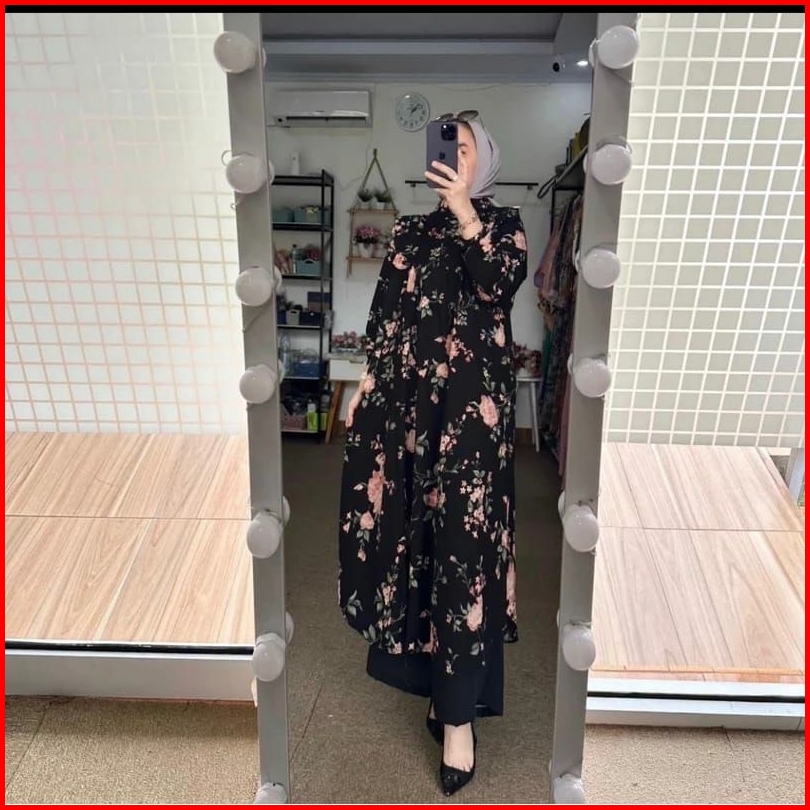 Setelan Long Tunik Wanita Terbaru Zira Set Long Tunik Bahan Rayon Diamond Mix Crinkle