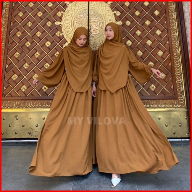 My Vilova - Zoya Set M L Xl Pashmina Oval Set Syar I Rayon Crinkle Premium Baju Muslim Jumbo Ld 100-130 Gamis Kondangan