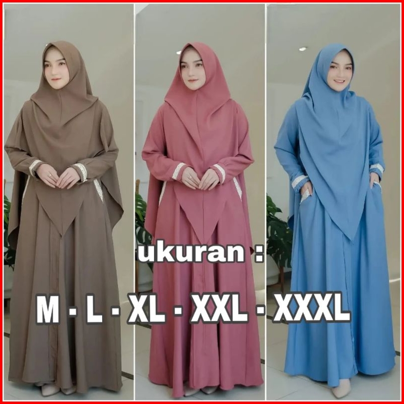 Harga Grosir Azahra Syari Gamis Syari Ukuran M - L - Xl - Xxl Jumbo Busui Plus Khimar Set Murah Dress Polos Terbaru Gami