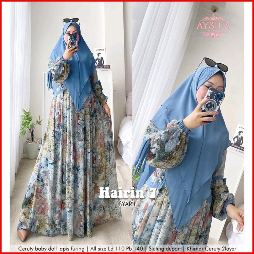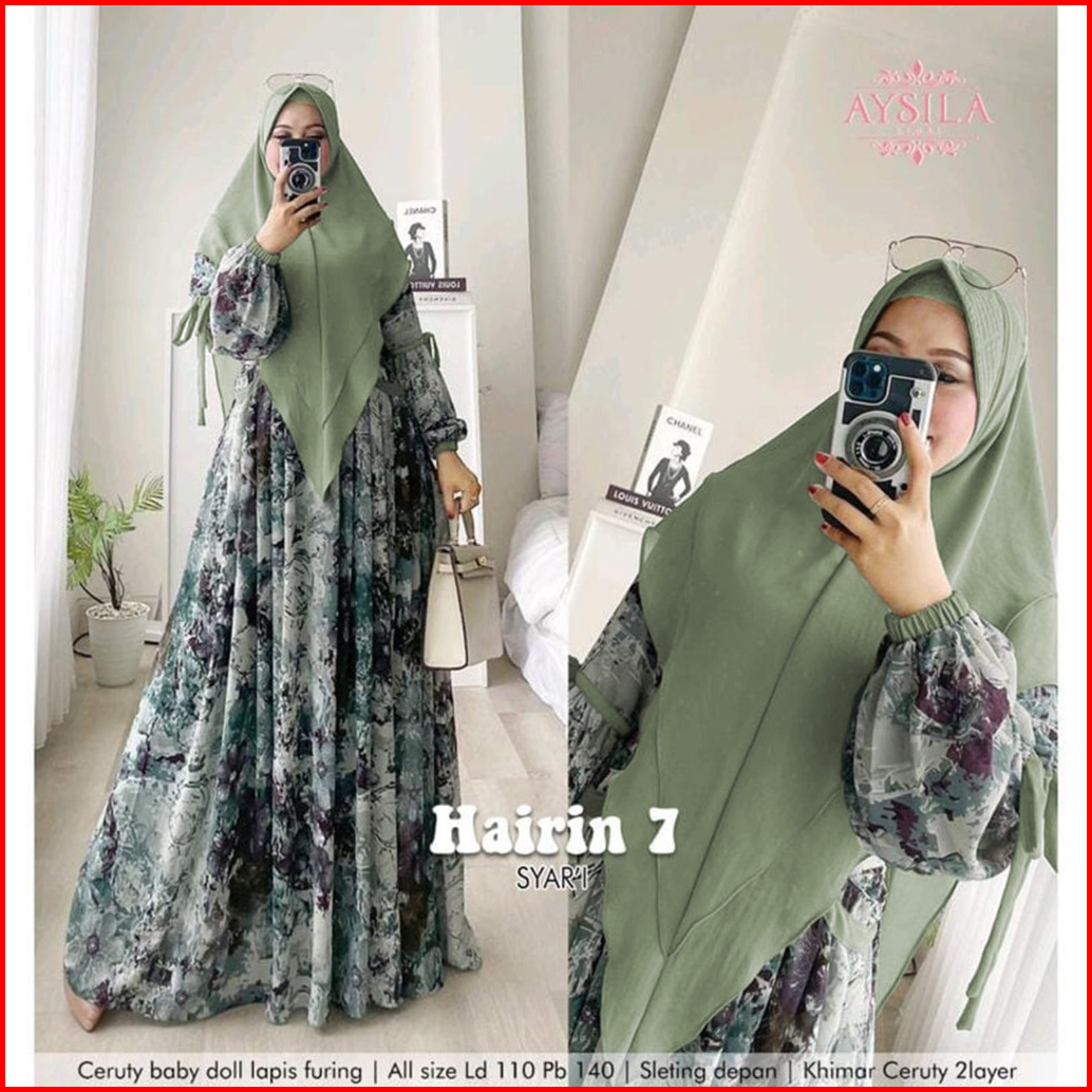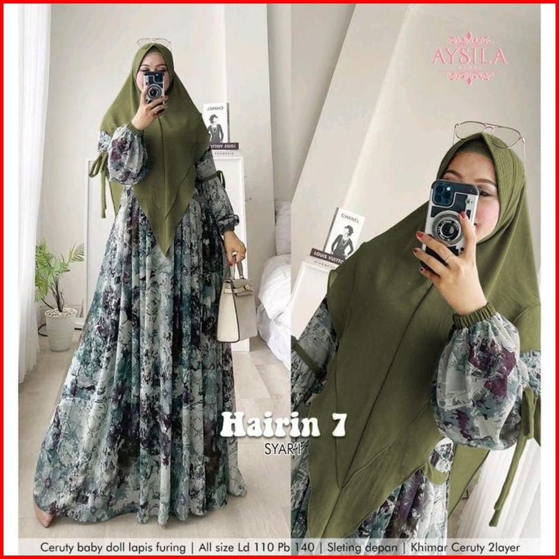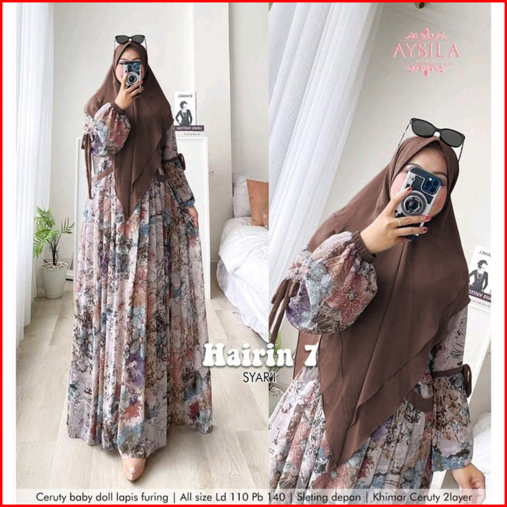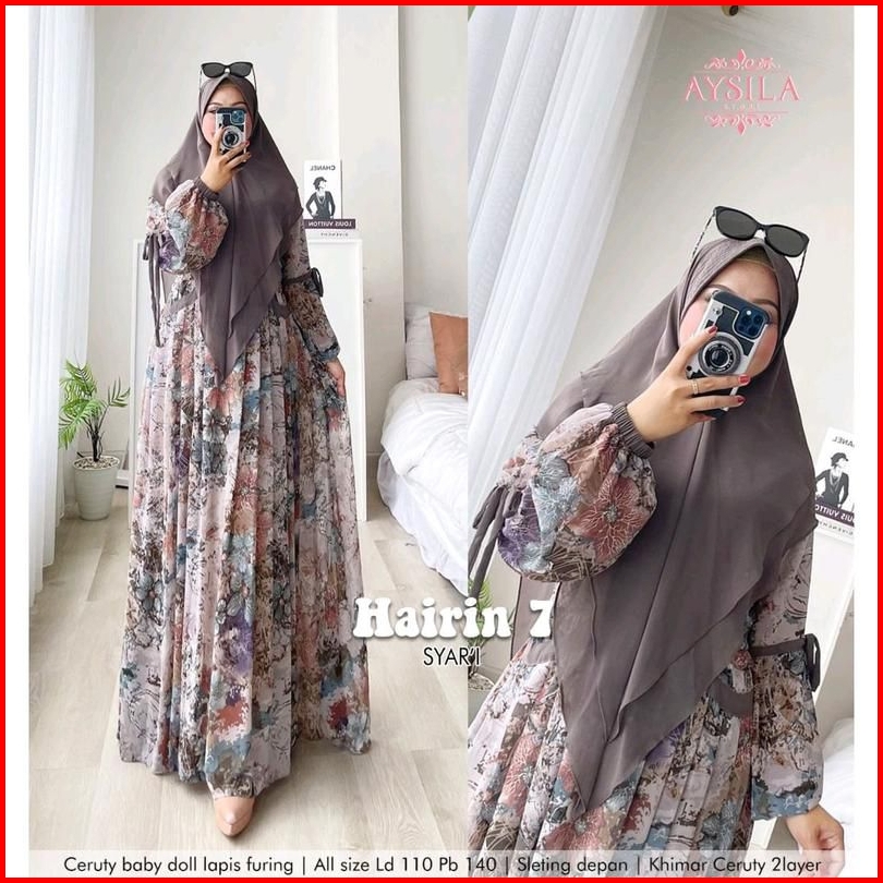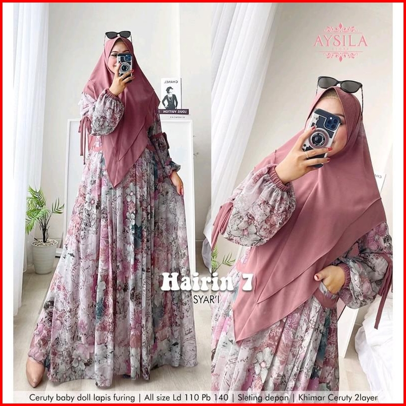 Hairin 7 Ld110 Ld120 Label Savna Set Gamis Syari Ceruty Motif Terbaru Best Seller