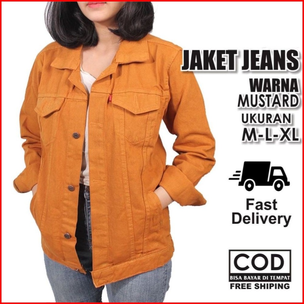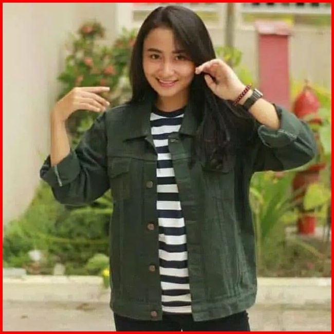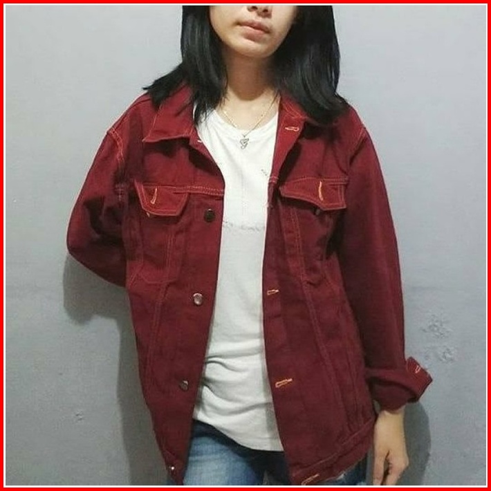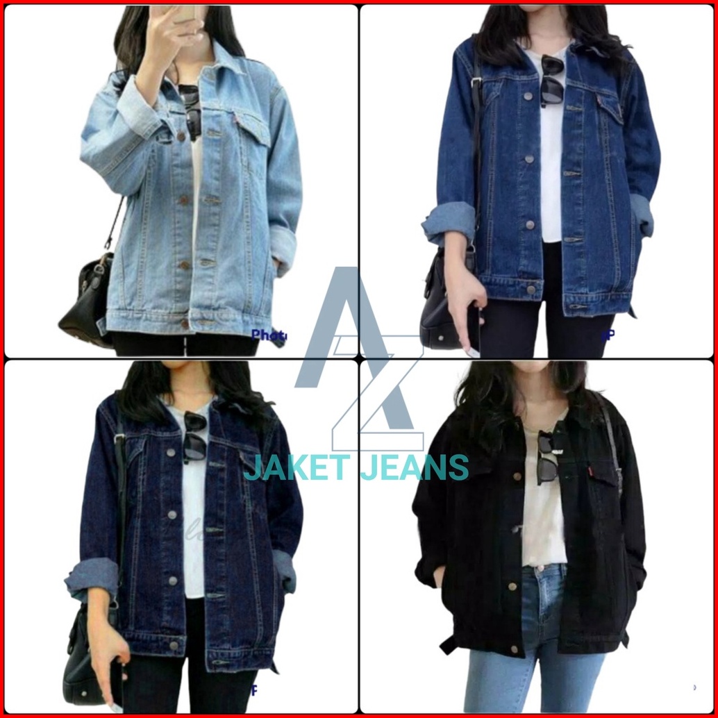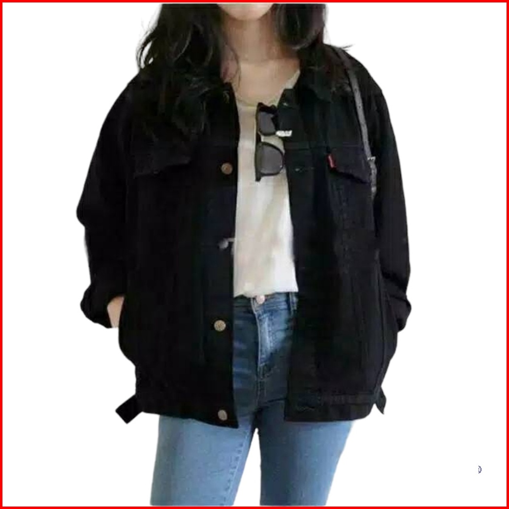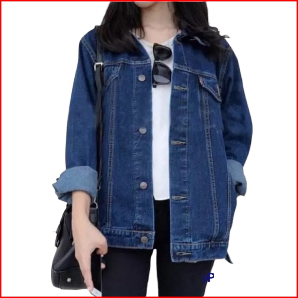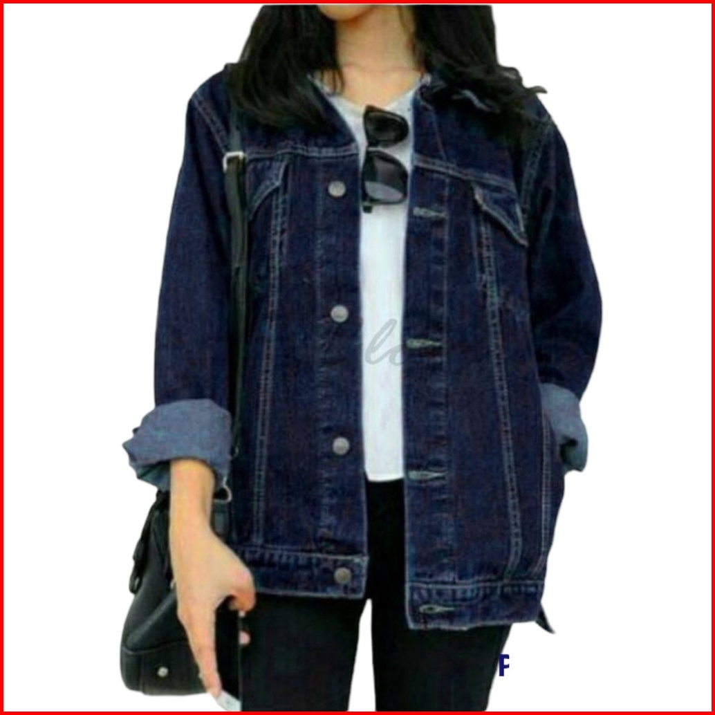 Jaket Jeans Denim Wanita Jumbo Big Size Cewek Kekinian Polos Biru Dongker Oversize Premium