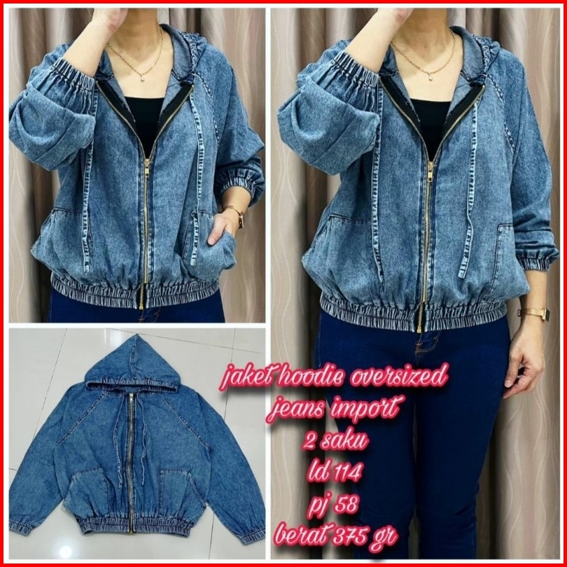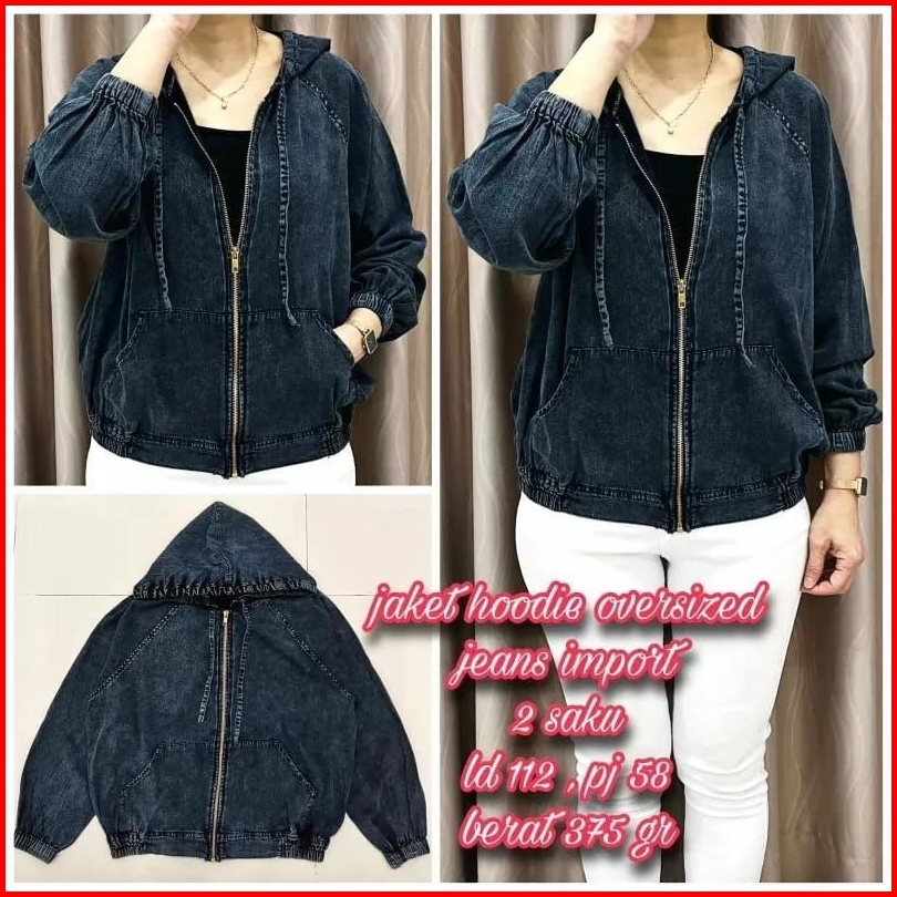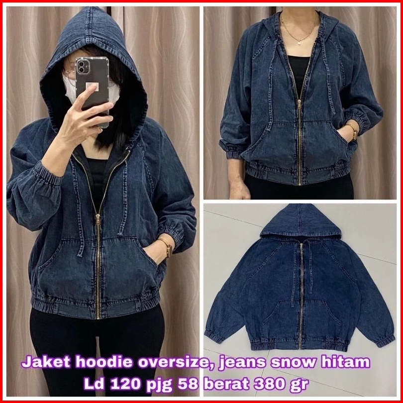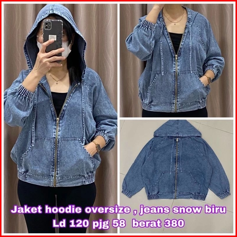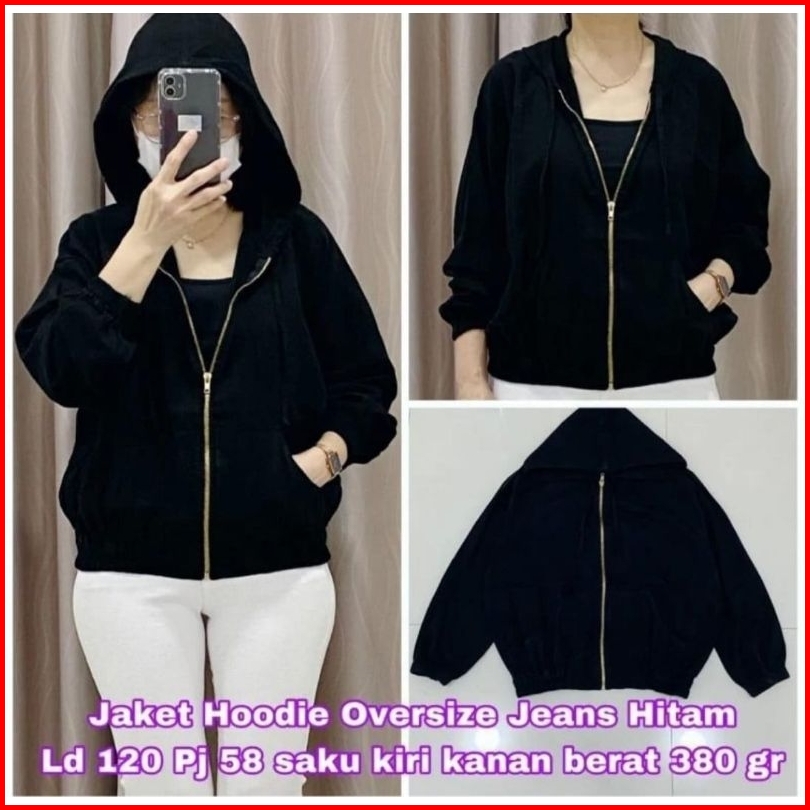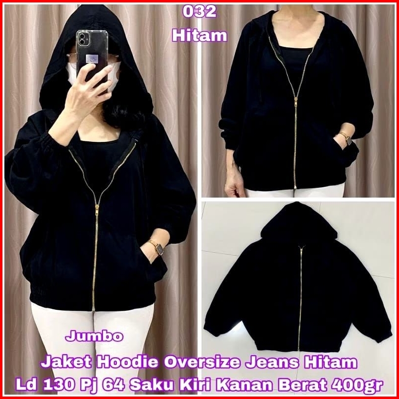 Jacket Jeans Hoodie Oversized Kode 8172 Jumbo 3l 4l Dan 7l Ada 2 Saku Lengan Panjang Karet