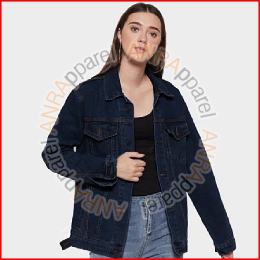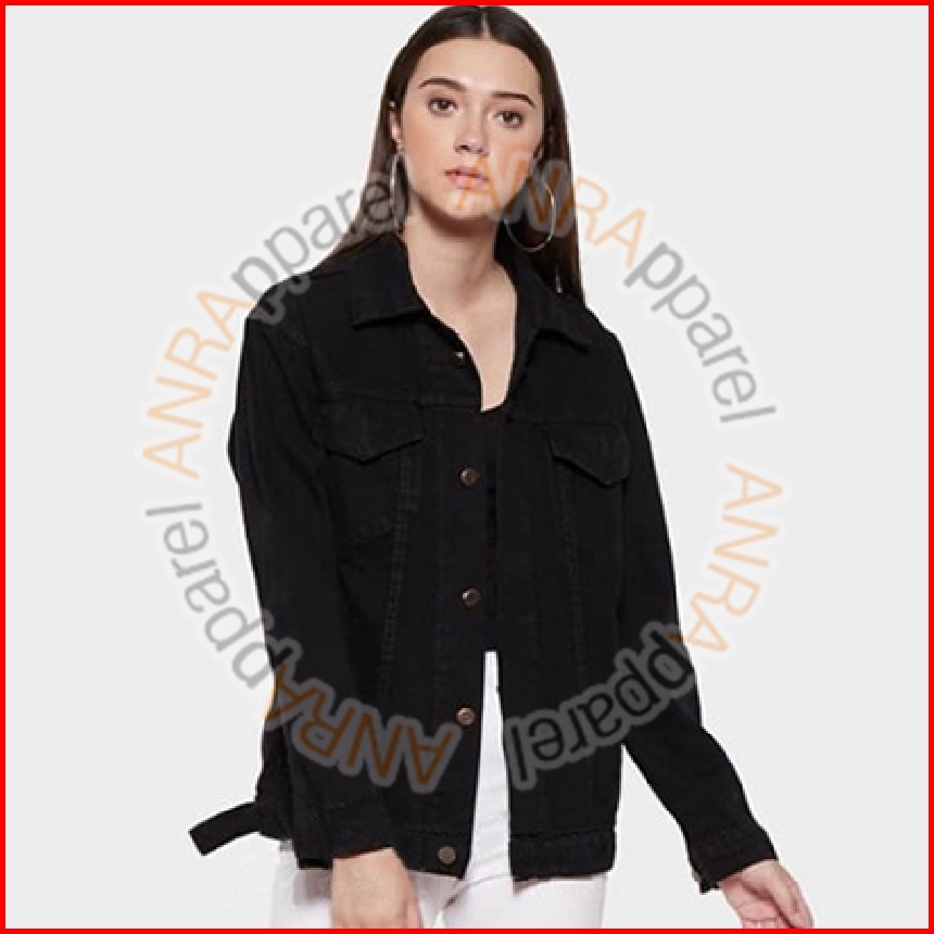 Jaket Jeans Denim Basic Oversize Wanita - Bioblitz Biowash Birudongker Hitam