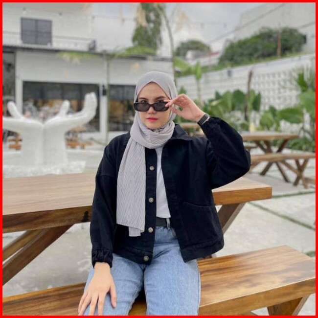 Jaket Wanita - Adriana Jacket Jeans - Atasan Wanita - Jaket Jeans - Pakaian Terlaris - Korean Style