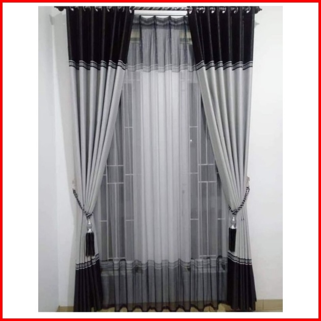 Gorden Blackout Bludru L190xt200-270cm Motif Atas Bawah Minimalis Gorden Jendela Pintu