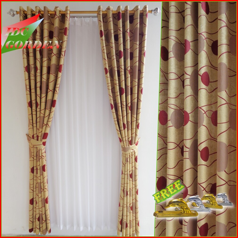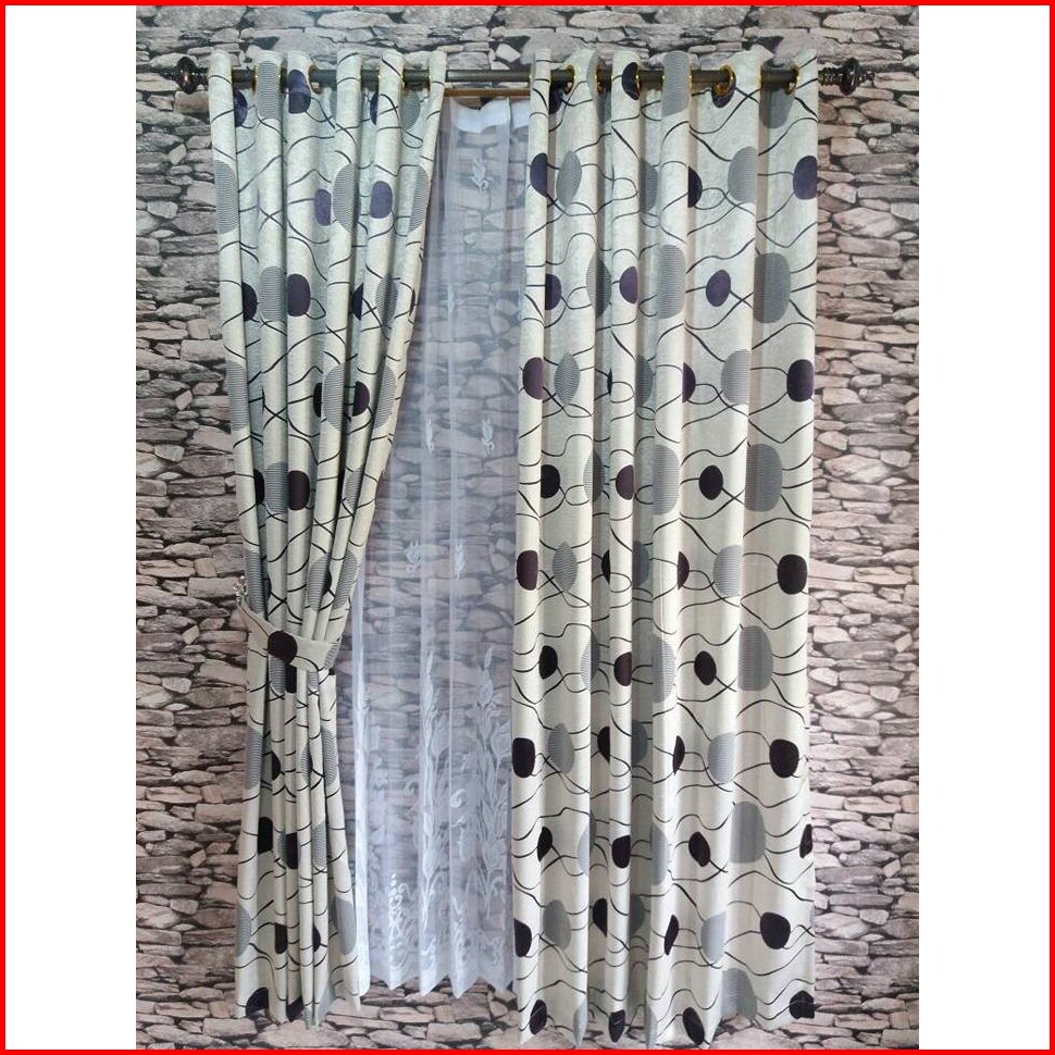 Gorden Blackout Bludru Motif Abu Polkadot Depan Belakang