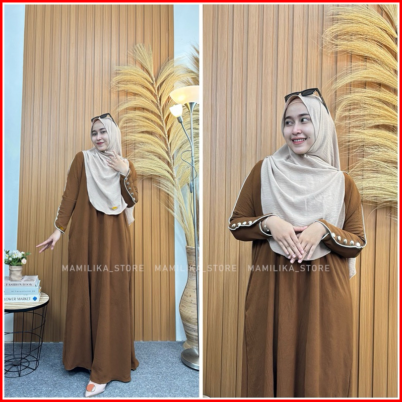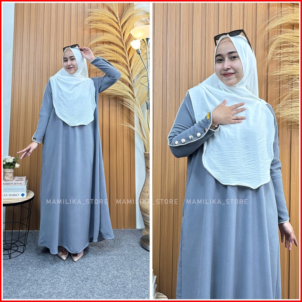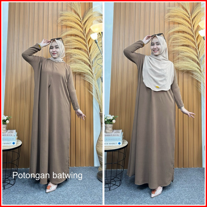 Habibah Abaya Basic Batwing Kancing Crinkle Airflow