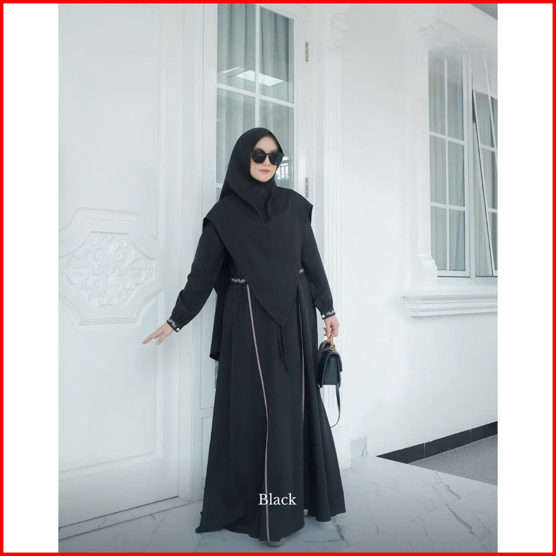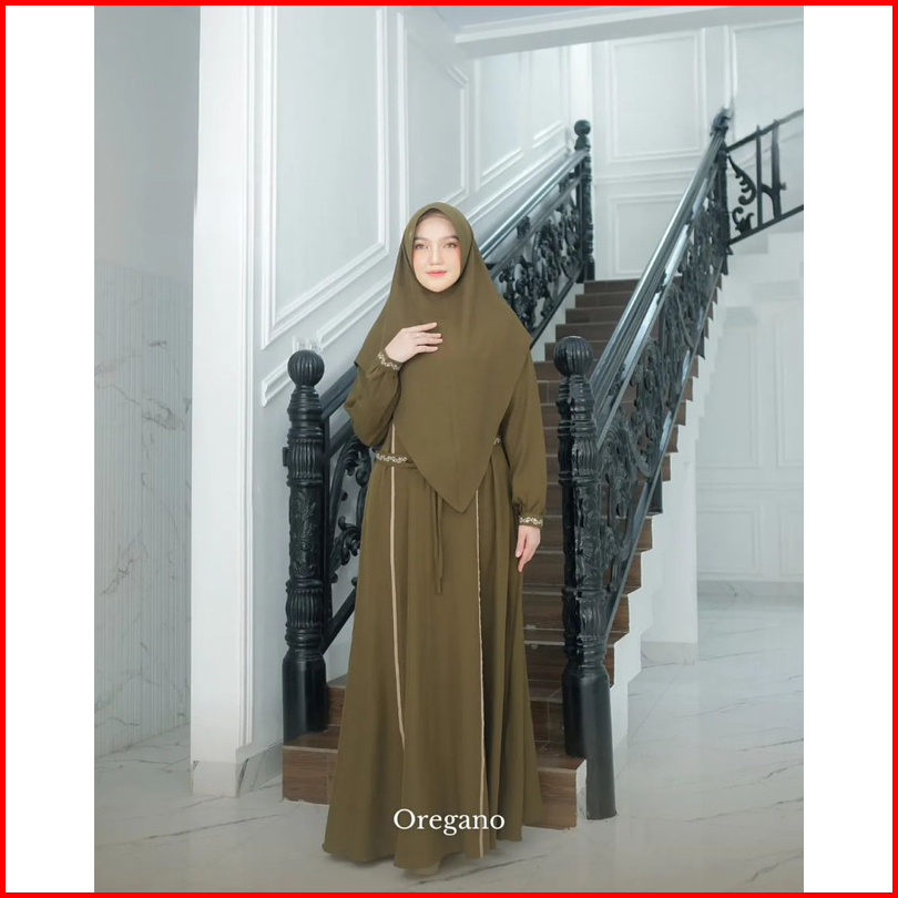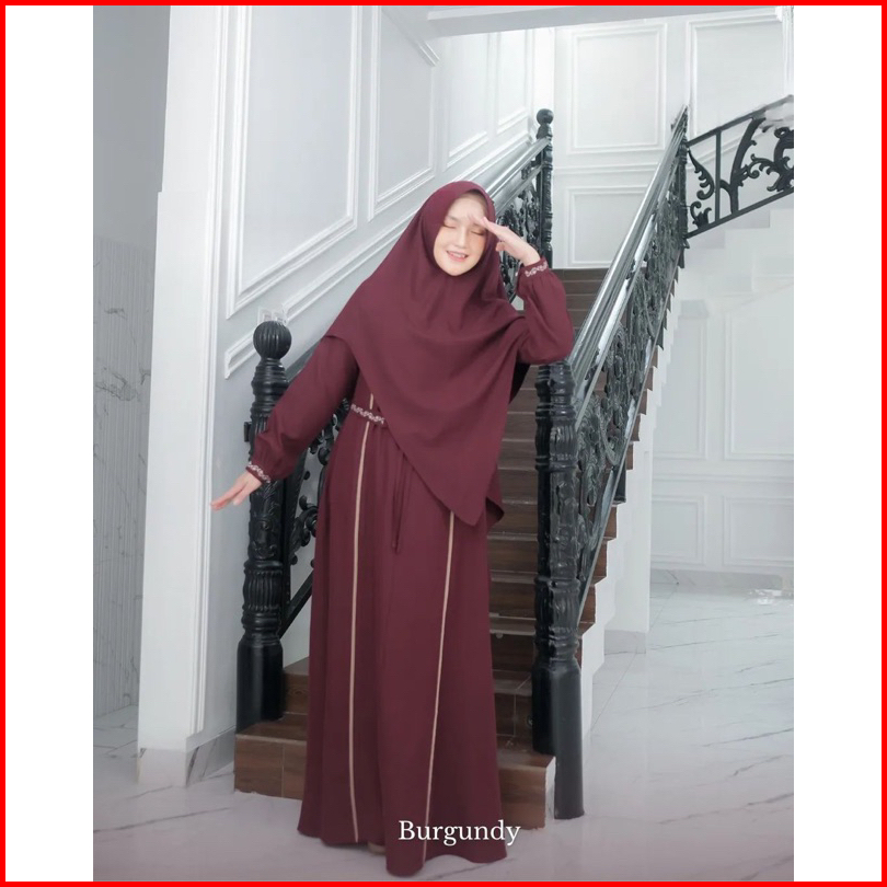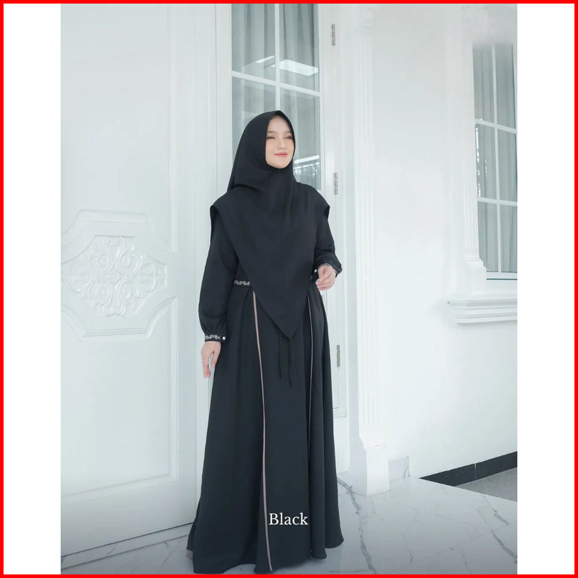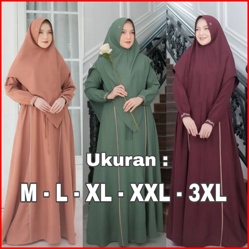 Jasmine Syari Gamis Set Khimar Model Baru Busui Freandly Jumbo Kekinian Variasi Renda Mewah Anggun Bahan Crinkle Airflow