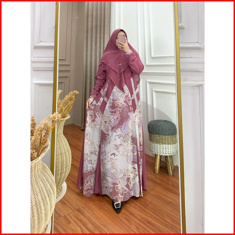 Aisyah Syari Set Hijab Seruty Gamis Simple Elegan Lebaran 2025 Label Annisa Colection