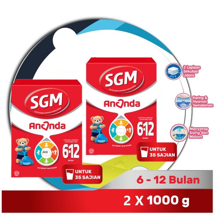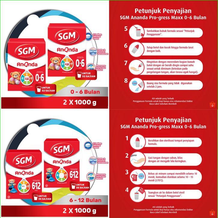Paket 2 Box SGM Ananda 1 (0-6 Bulan) / Ananda 2 (6-12 Bulan) Formula Bayi Bubuk 1000gr x 2box