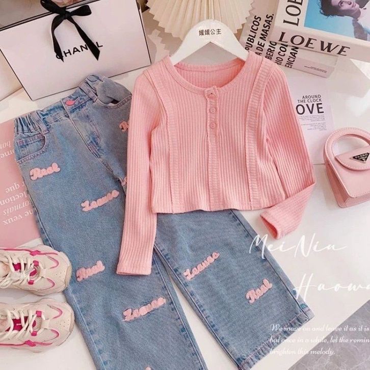 Setelan Anak Perempuan Terbaru Baju Lengan Panjang + Celana Jeans Panjang
