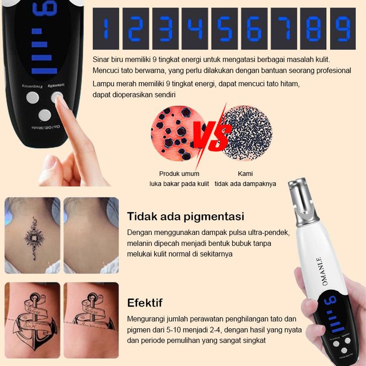 Pena Laser Picosecond Tanpa Kabel/Blackdoll Menghilangkan bintik-bintik,tato hitam dan berwarna,kutil,tahi lalat GARANSI