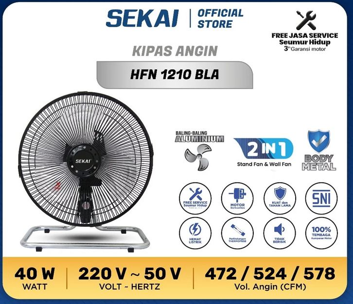 SEKAI Kipas Angin Dinding / Kipas Angin Meja Tornado 2 in 1 12 Inch - HFN 1210