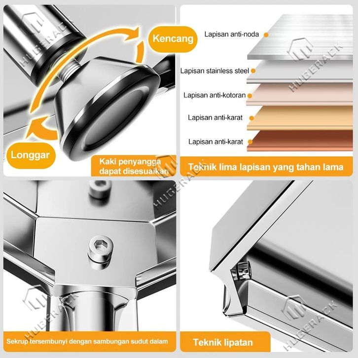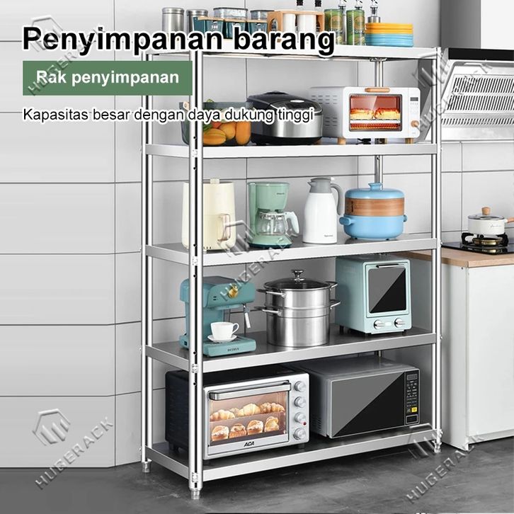 GERATIS ONGKIR Rak Dapur Stainless Steel Rak 5 susun Rak Penyimpanan Tempat Serbaguna 5 Susun Rak besi Rak Microwave Ove