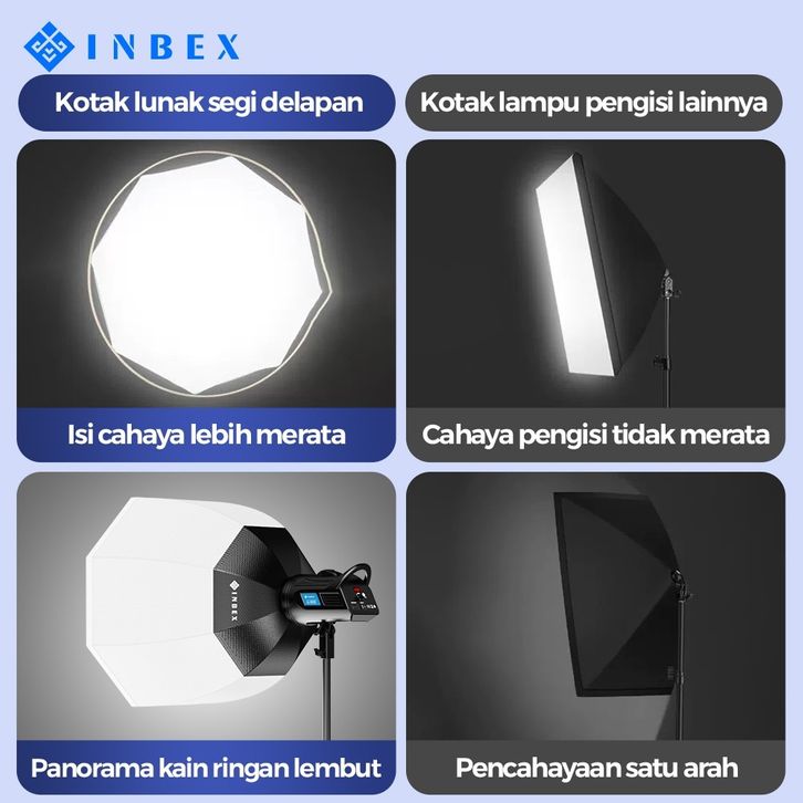 INBEX Softbox segi delapan:ideal untuk studio foto,video,dan live streaming,cocok untuk studio foto