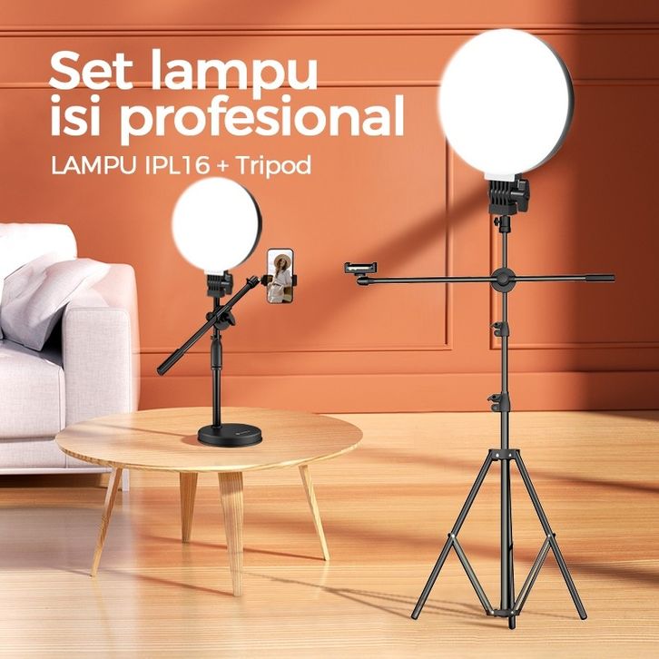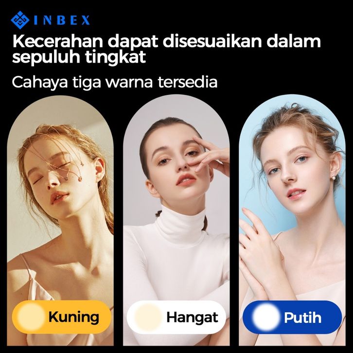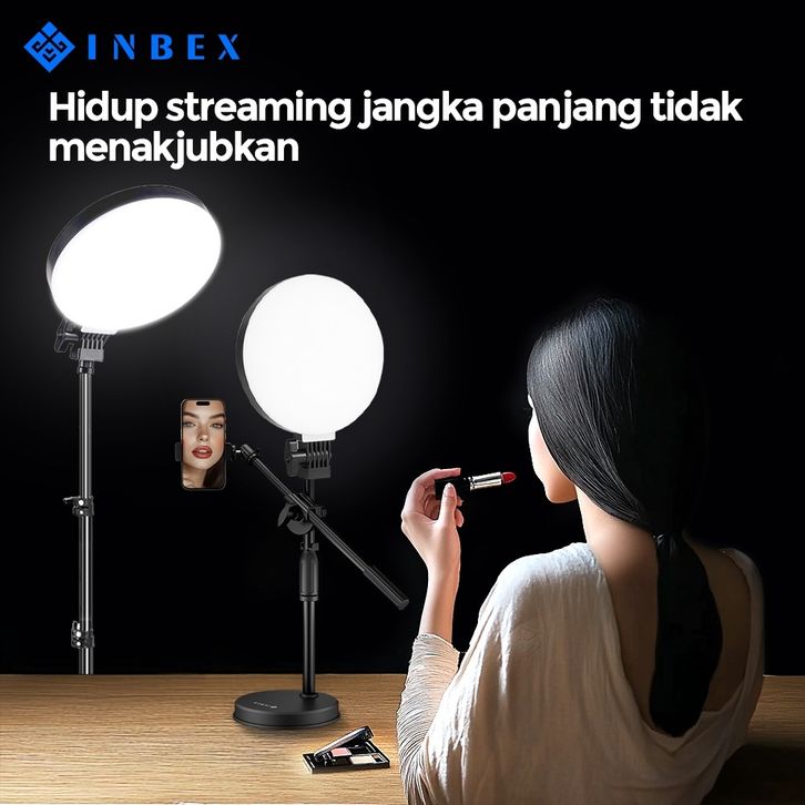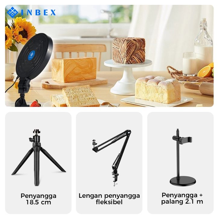 INBEX IPL16 Lampu panel Bundar Portabel Kecerahan 3 Warna Cahaya Dapat Diatur Lampu pengisian LED/Streaming langsung / t
