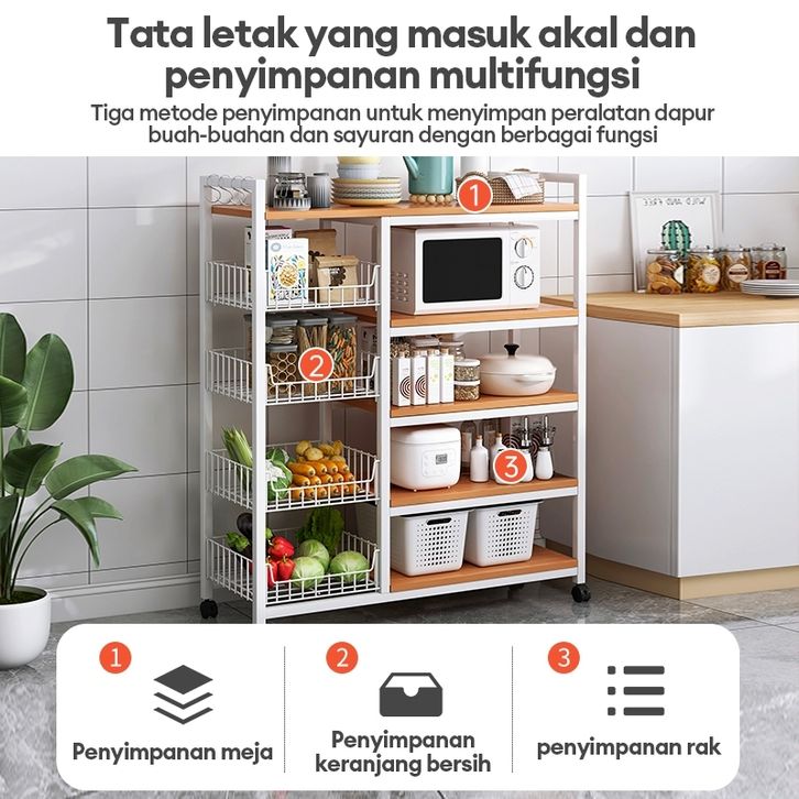 GERATIS ONGKIR Rak Dapur Minimalis Rak baja dengan roda Rak buah dan sayuranRak Penyimpanan Serbaguna Kitchen Rak Oven M