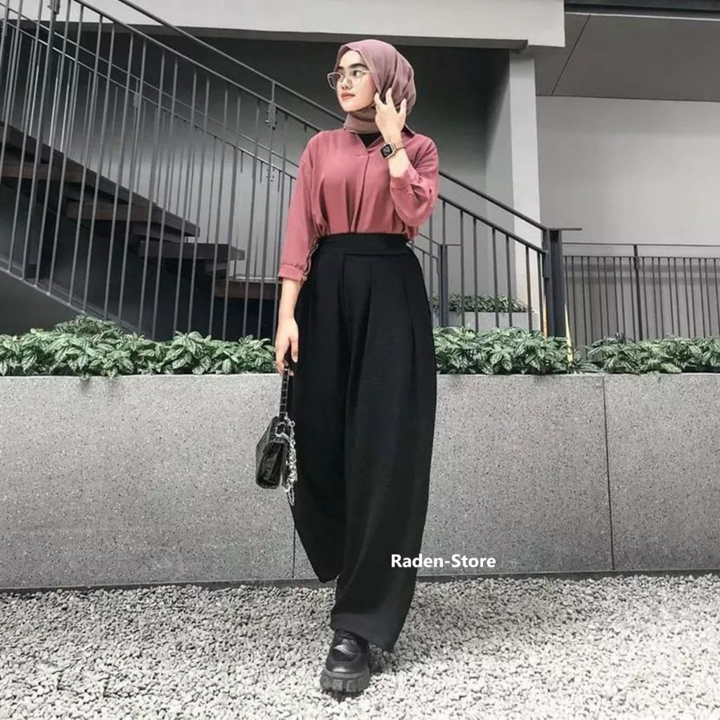 (Gratis Ongkir) Celana Kulot Crinkle Airflow Highwaist Wanita Loose Cullote Pant Jumbo