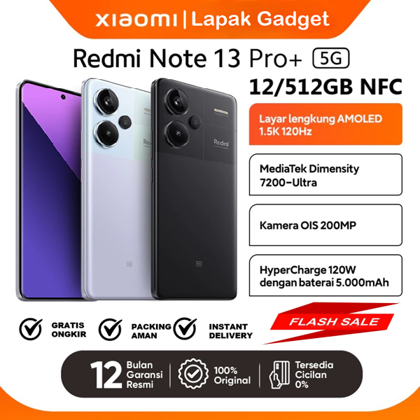 HP REDMI NOTE 13 PRO PLUS 5G 12GB/512GB GARANSI RESMI NFC Dimensity 7200-Ultra Layar CrystalRes AMOLED 6,67" 5.000 mAh