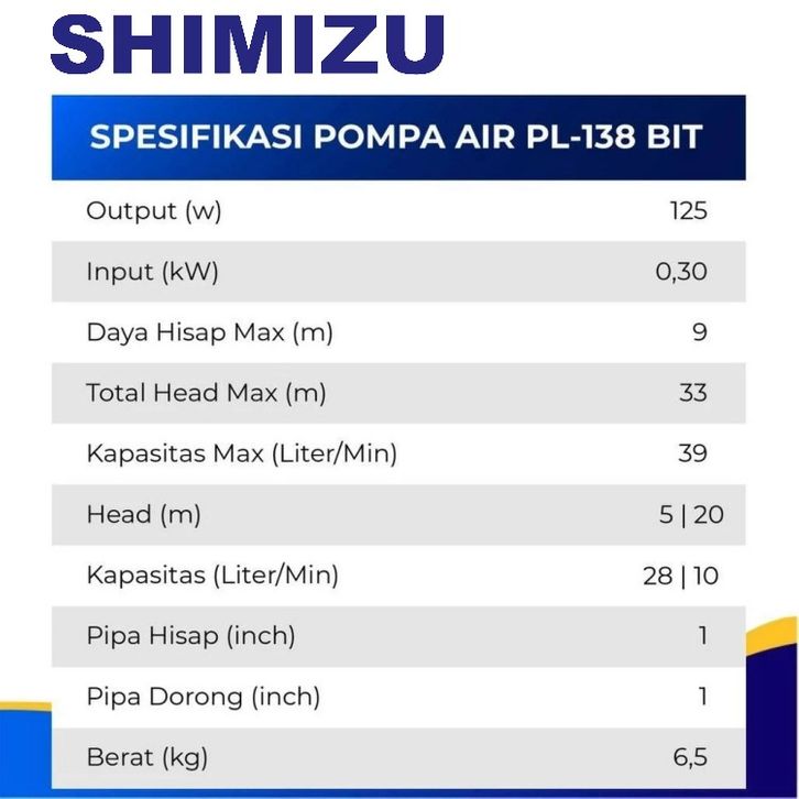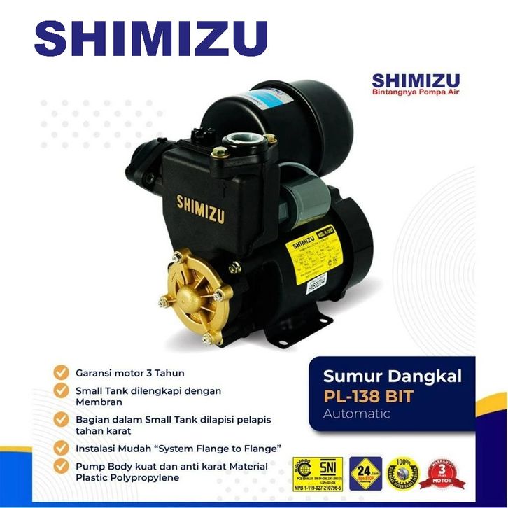 Pompa Air Shimizu Otomatis PL 138 BIT - Sumur Dangkal Original
