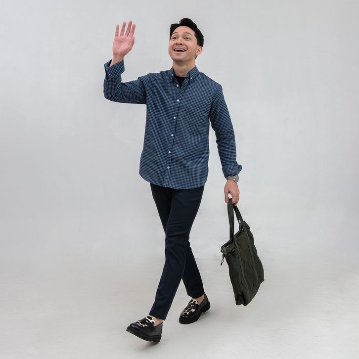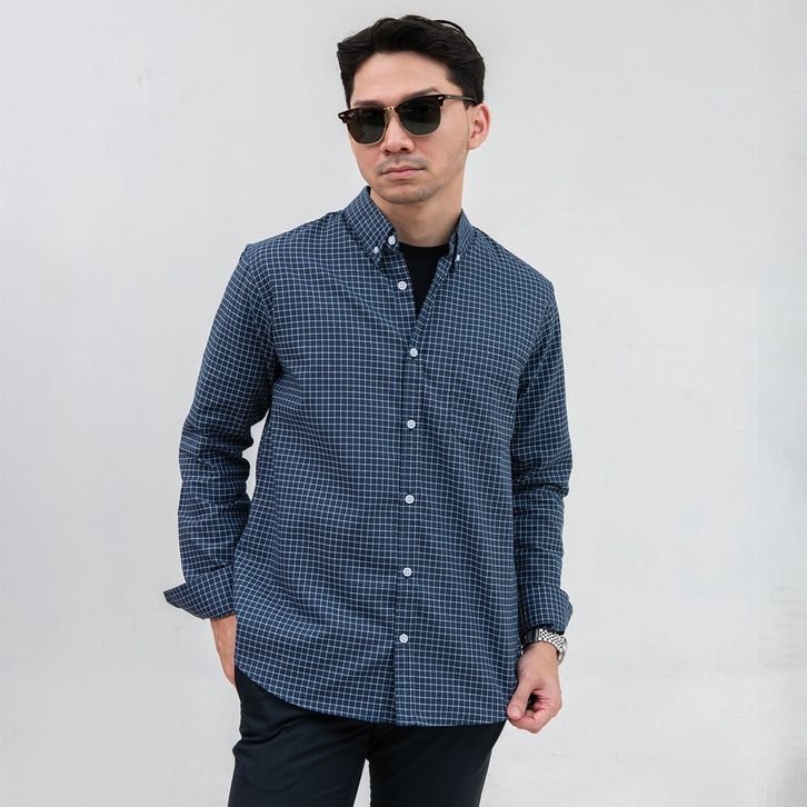 Kemeja Kotak Garis Pria WOODCUTTER Plaid Basic Shirt - Navy Blue Lengan Panjang