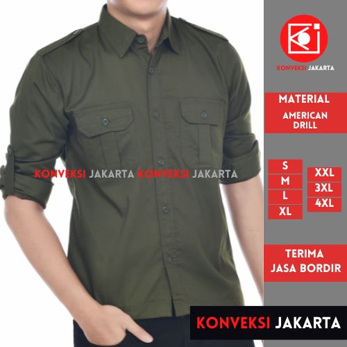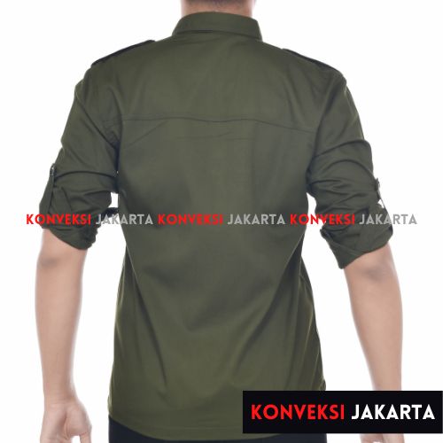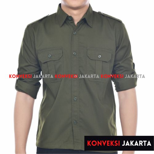 Baju Kemeja PDL Lengan Panjang Pria - Seragam Pakaian Kerja Dinas Lapangan Outdoor GAANung Warna Hijau Army - Konveksi
