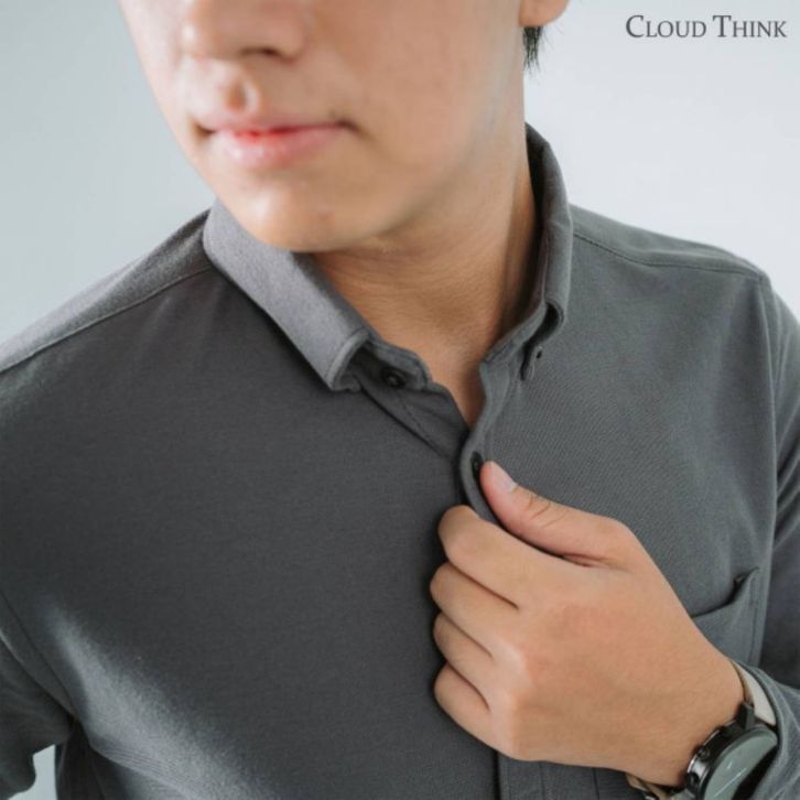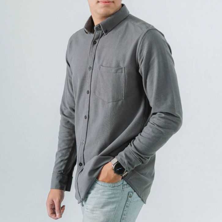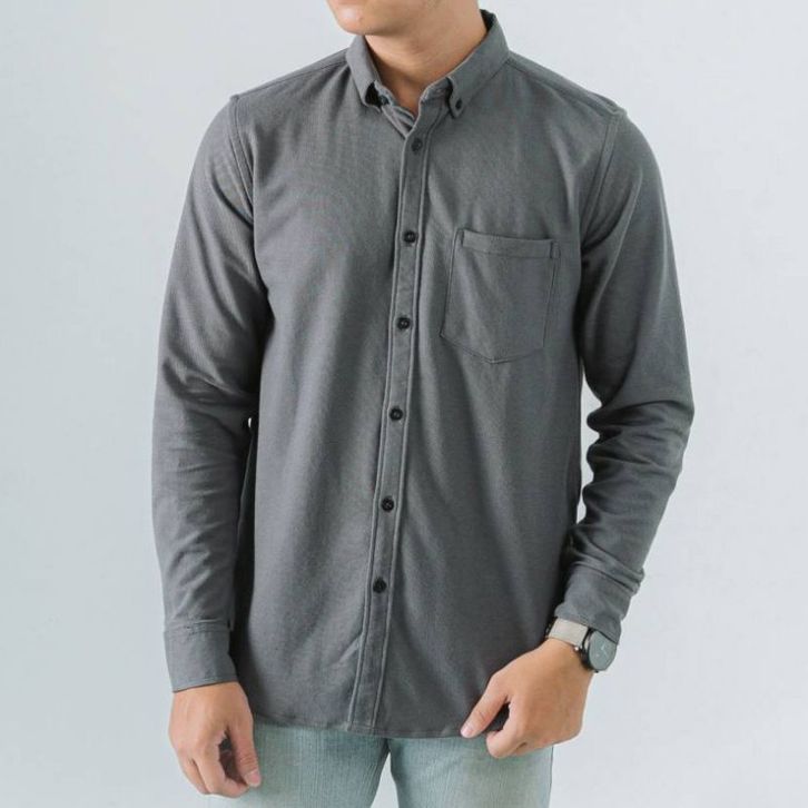 Kemeja Pria Lengan Panjang Original Abu Tua Pique Premium Keren Kekinian