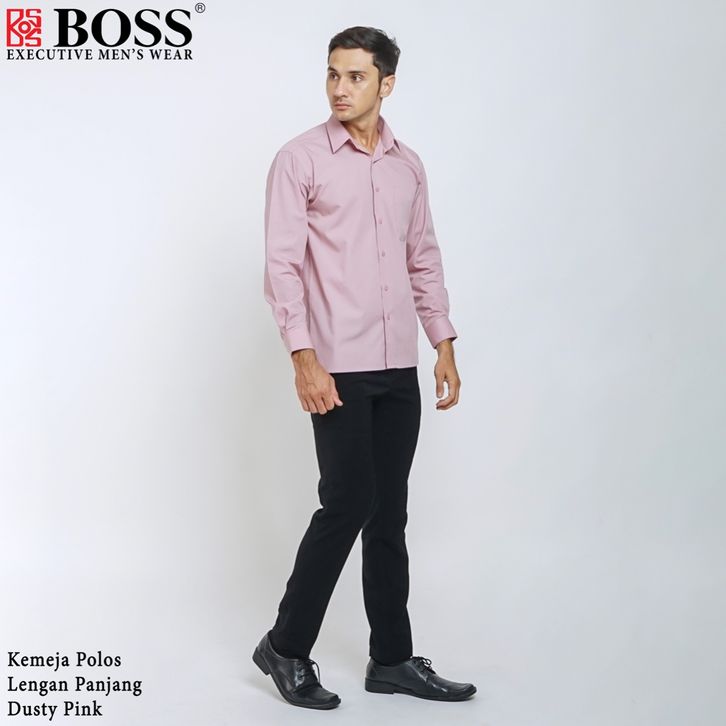 BOSS Kemeja Polos Pria Lengan Panjang Regular Fit Dusty Pink