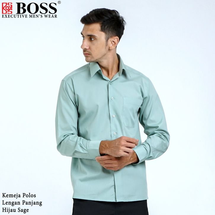 BOSS Kemeja Polos Pria Lengan Panjang Hijau Sage