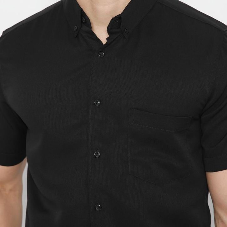 Platini Baju Kemeja Polos Basic Pria Pendek Polinosic Hitam 63100