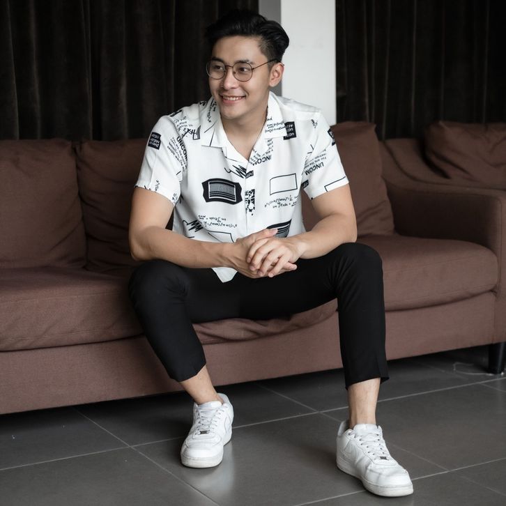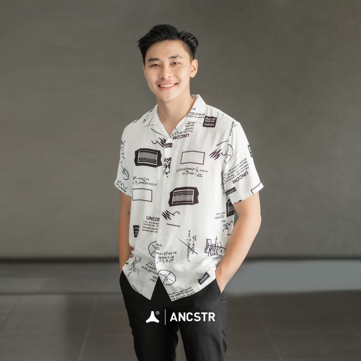 ANCSTR Kemeja Printing Motif Abstrak - Mate White