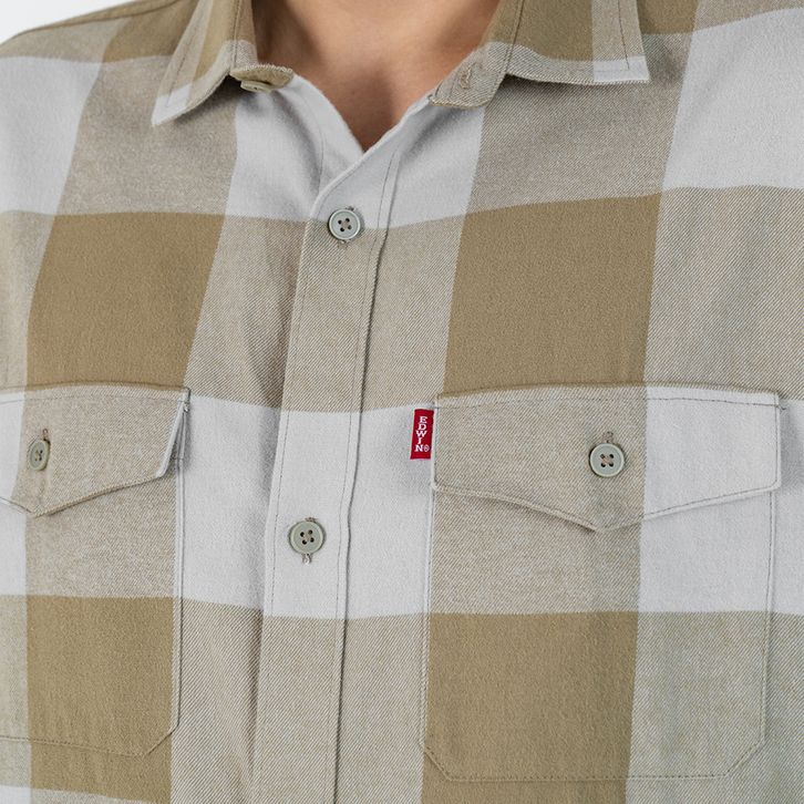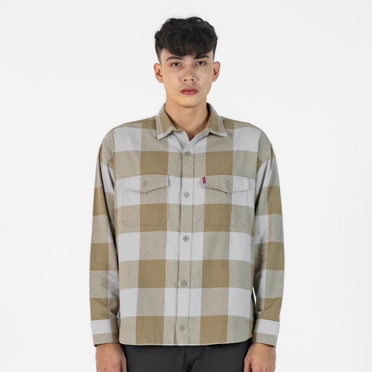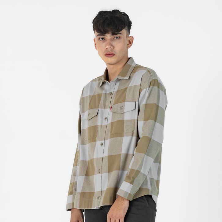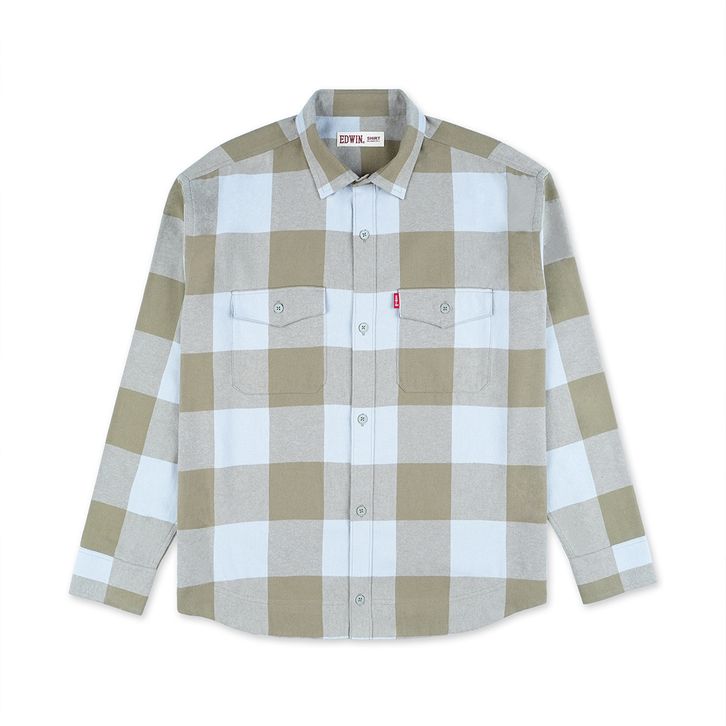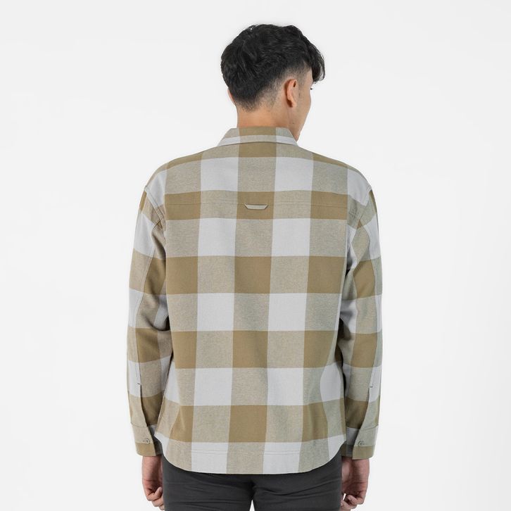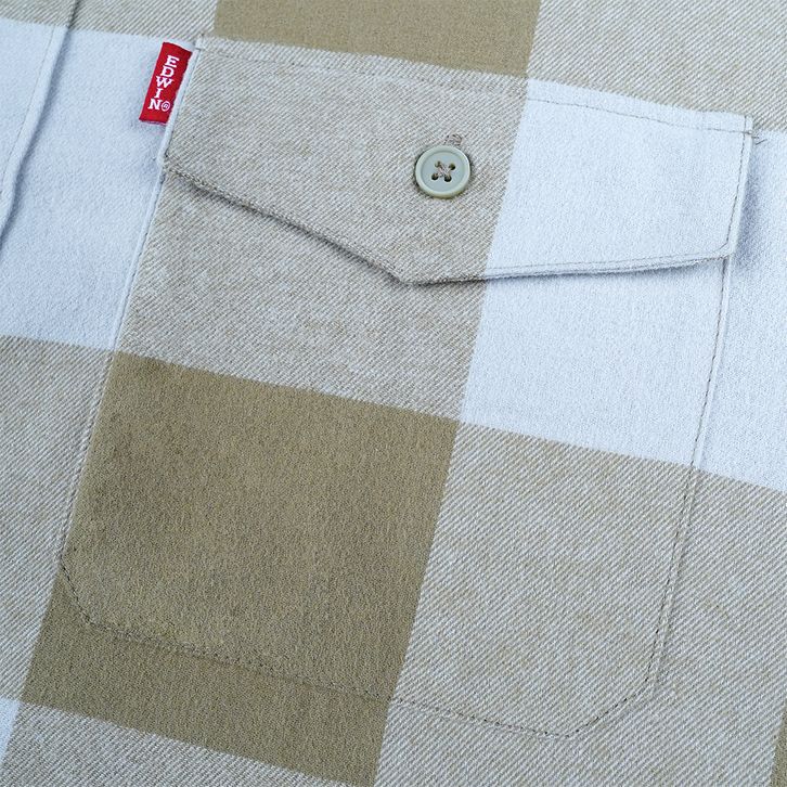 BASTIEN - BEIGE WHITE PEPPER Kemeja Flannel Casual Pria Lengan Panjang LS - Top Man Shirt Edwin Jeans