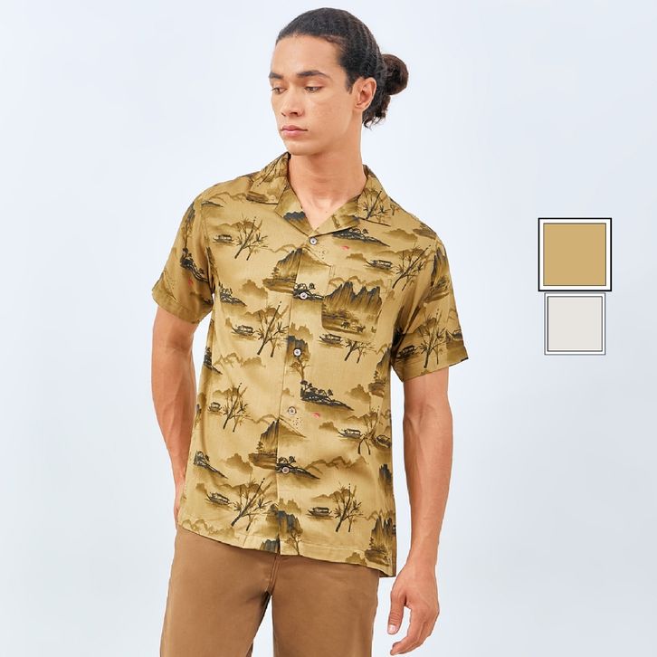M231 Kemeja Pria Printing Hawaii Pendek New Terrain 0130