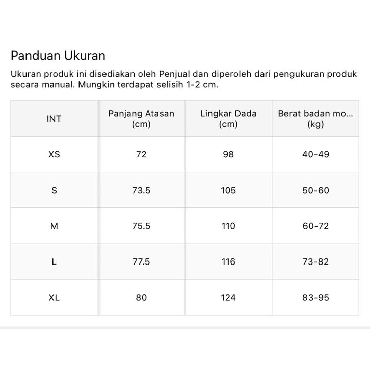 L (15.5 - 33), M (15 - 33), S (14.5 - 33), XL (16 - 34), XS (14 - 32)
