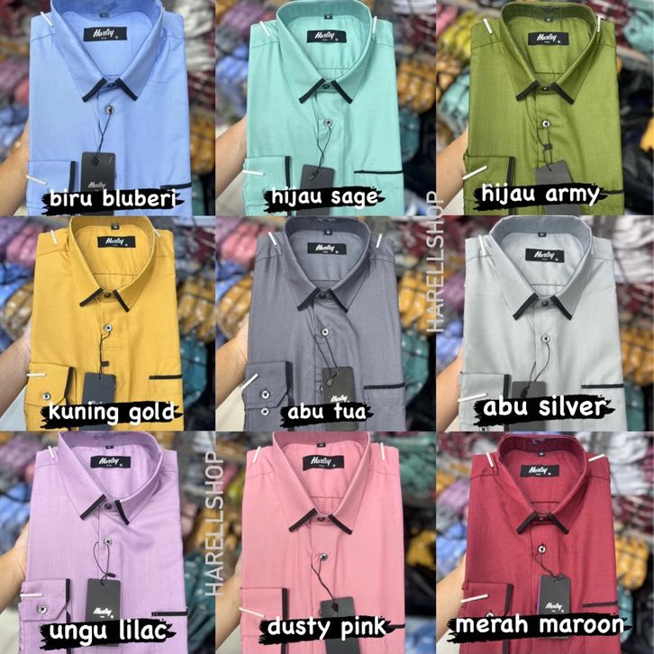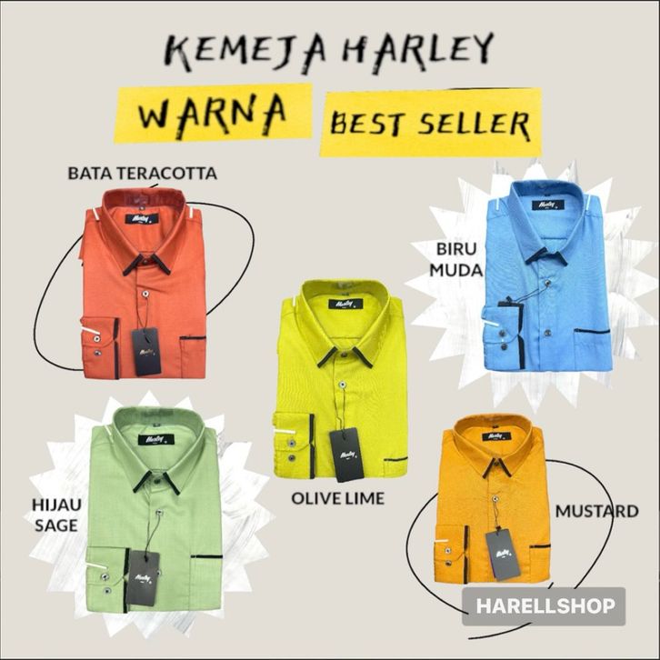 BISA PILIH WARNA dan - Ready Kemeja HARLEY MAN HEM HARLEY MAN lengan panjang warna Biru bluberi kuning 60LD olive army