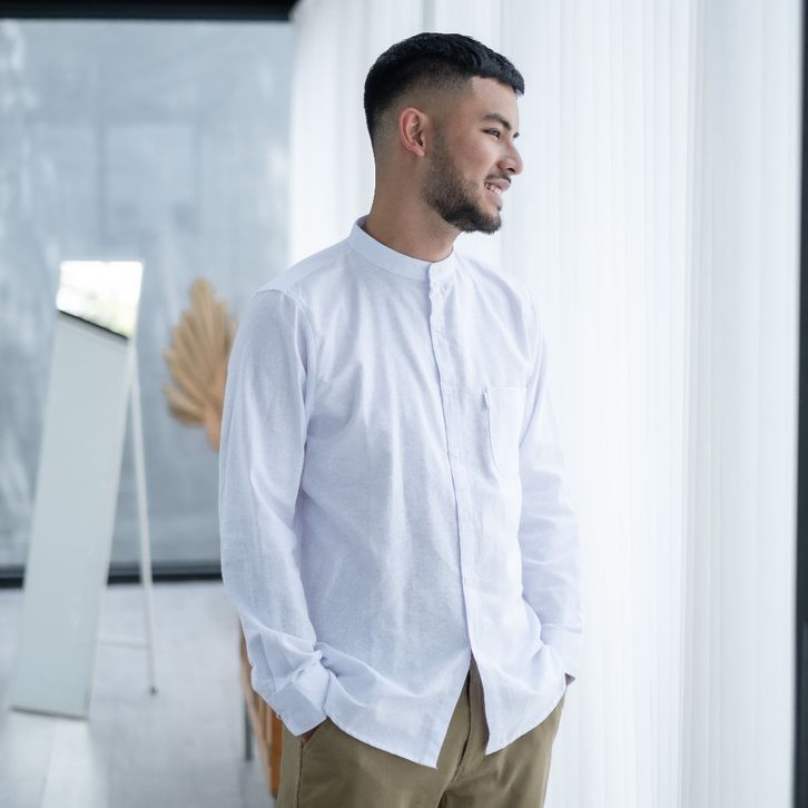 ANCSTR Kemeja Pria Shanghai Polos - Kemko Lengan Panjang Saku