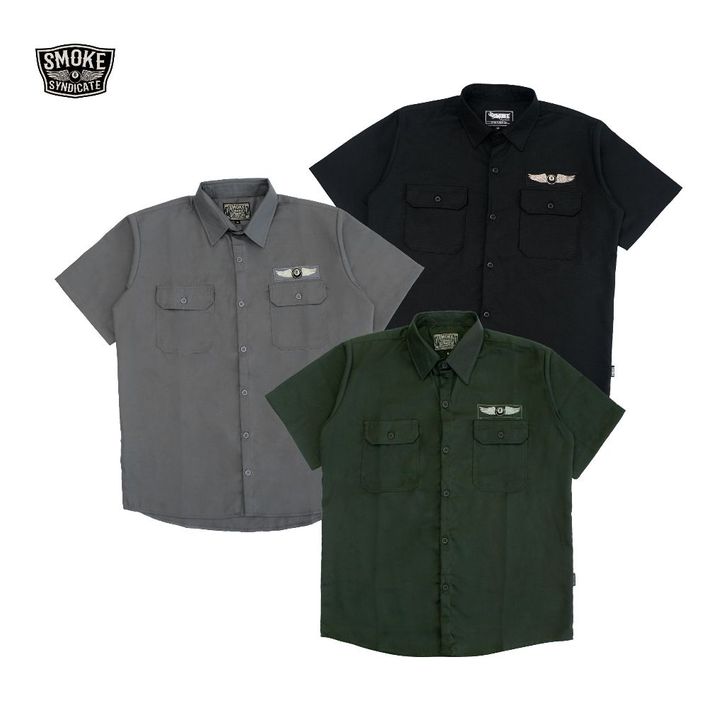 SMOKE Workshirt Kemeja "BALL" Hitam - Abu Tua - Army