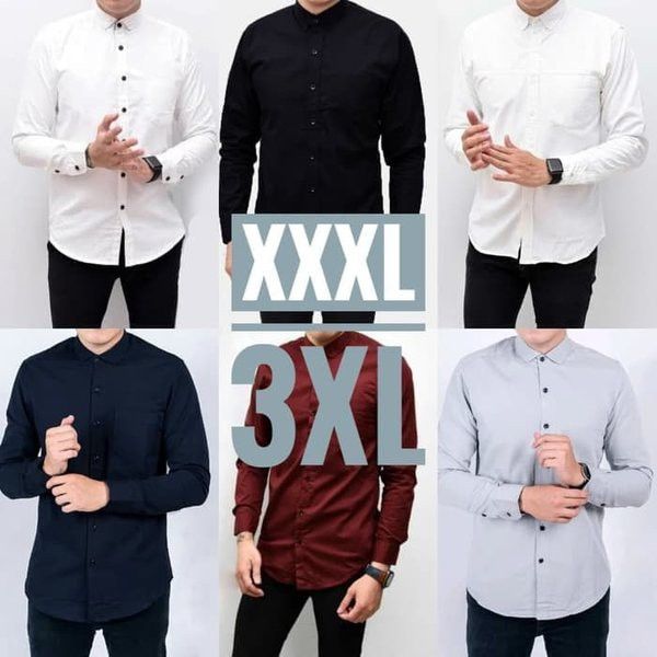 Kemeja Lengan Panjang Pria Polos Jumbo XXL XXXL Hitam Merah Maroon Dark Blue White Slimfit Casual