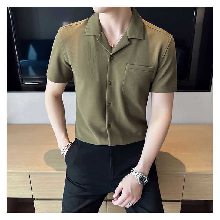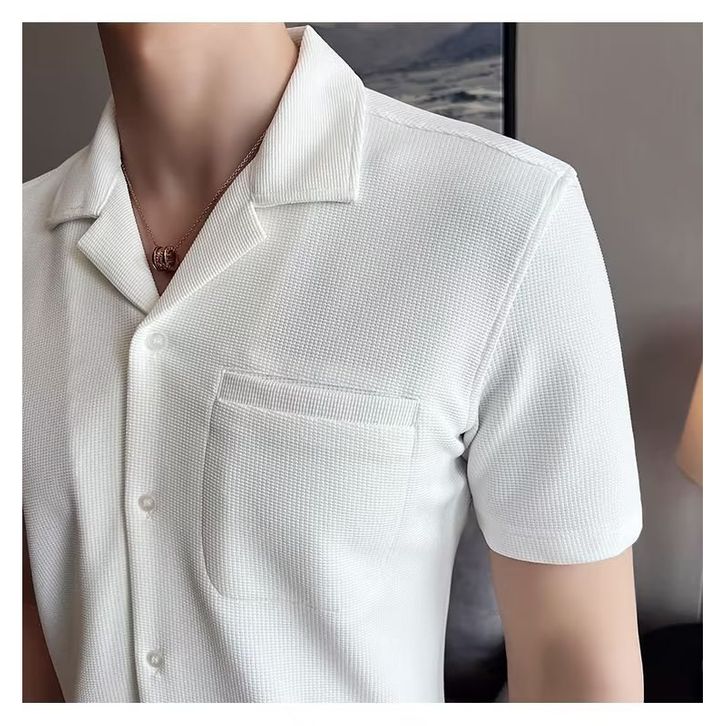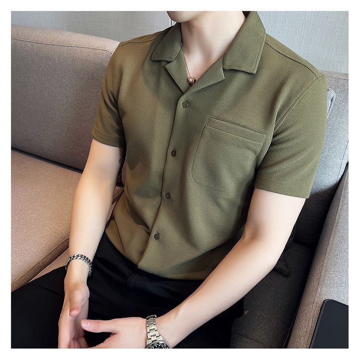 Kemeja Casual Pria Polos Tekstur Waffle Kualitas Import Korean Style Lengan Pendek Kemeja Kantor