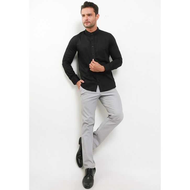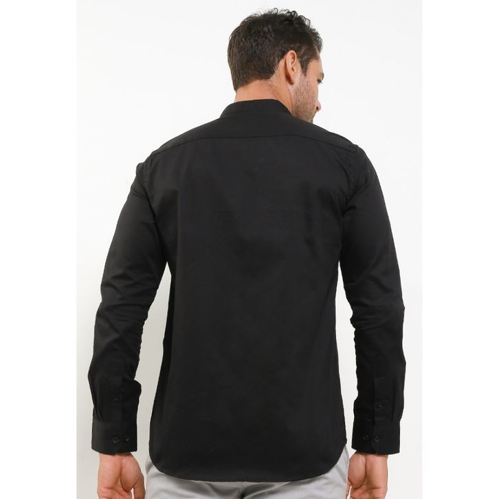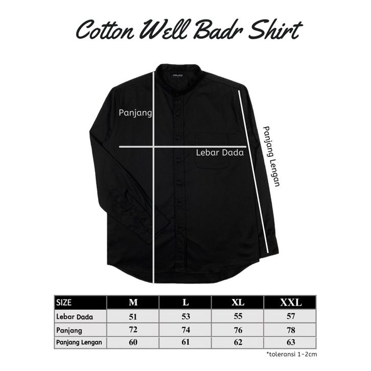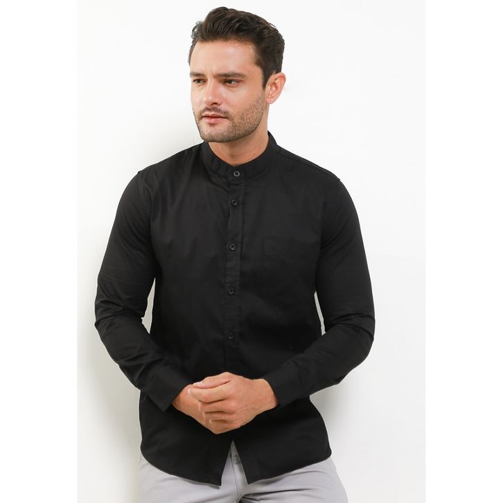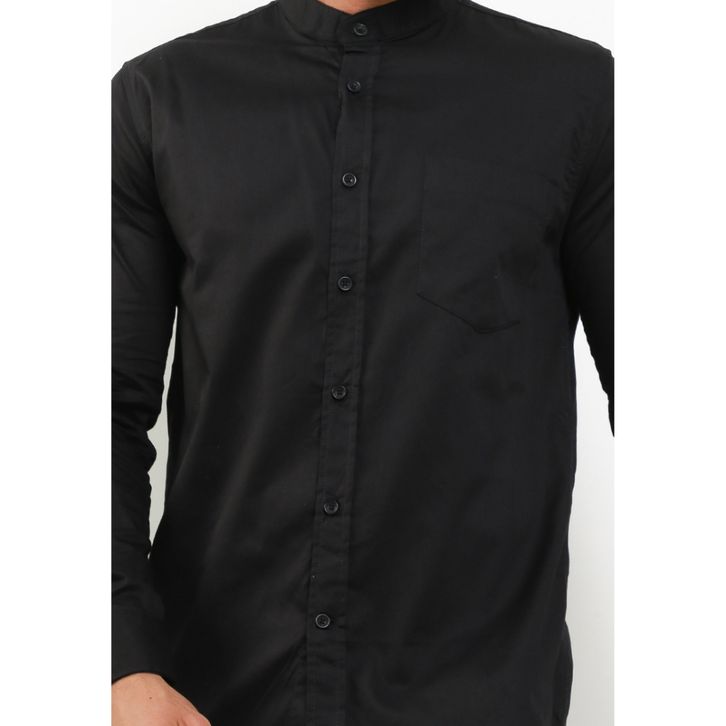 Cotton Well Badr Shirt Black Kemeja Koko Pria Polos Panjang Hitam