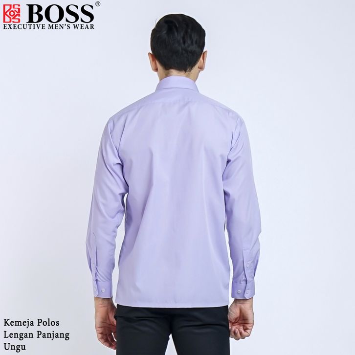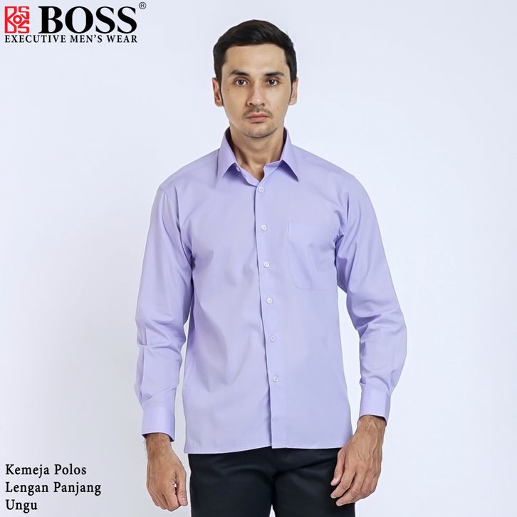 BOSS Kemeja Polos Pria Lengan Panjang Regular Fit Ungu