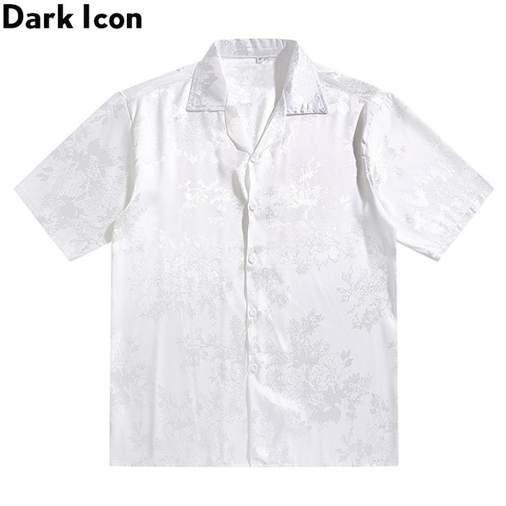 Dark Icon Kemeja Ice Silk Pria Jacquard Kemeja Hitam Pria Baju Pria Lembut Keren Pria Kemeja Cowok Lengan Pendek