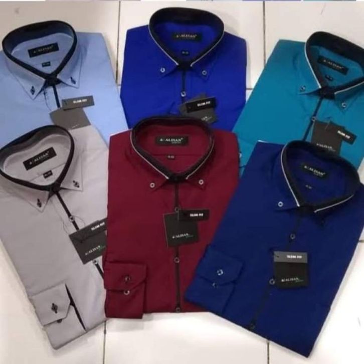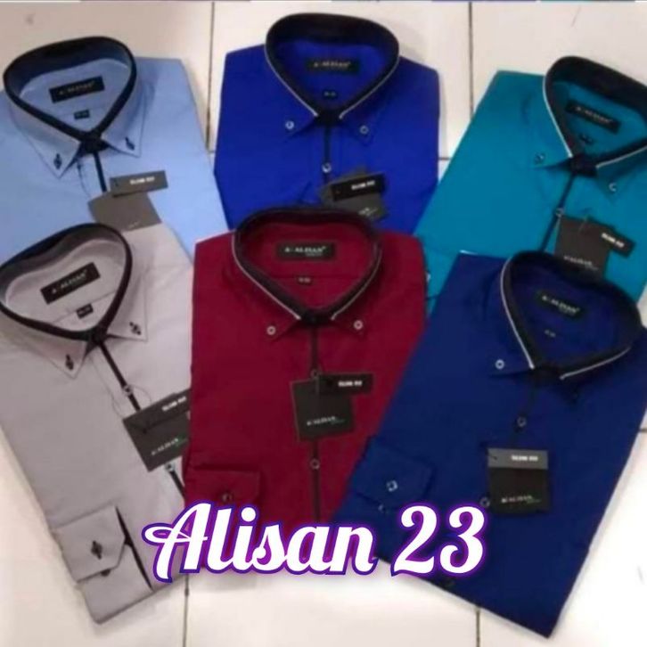 Kemeja ALISAN Polos Kombinasi List Tengah Lengan Panjang 100 ORI