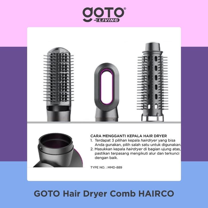 Goto Hairco Hair Dryer Sisir Blow Hairdryer Pengering Rambut 3in1