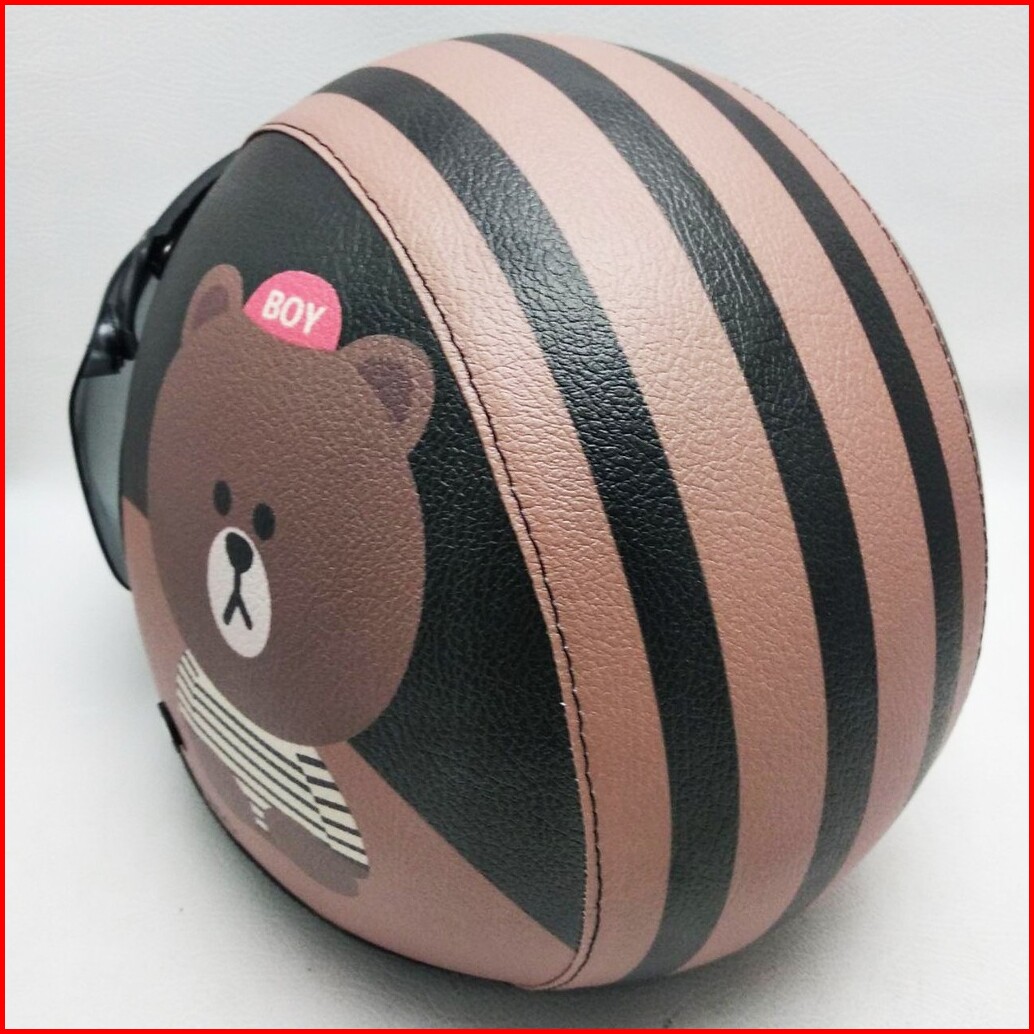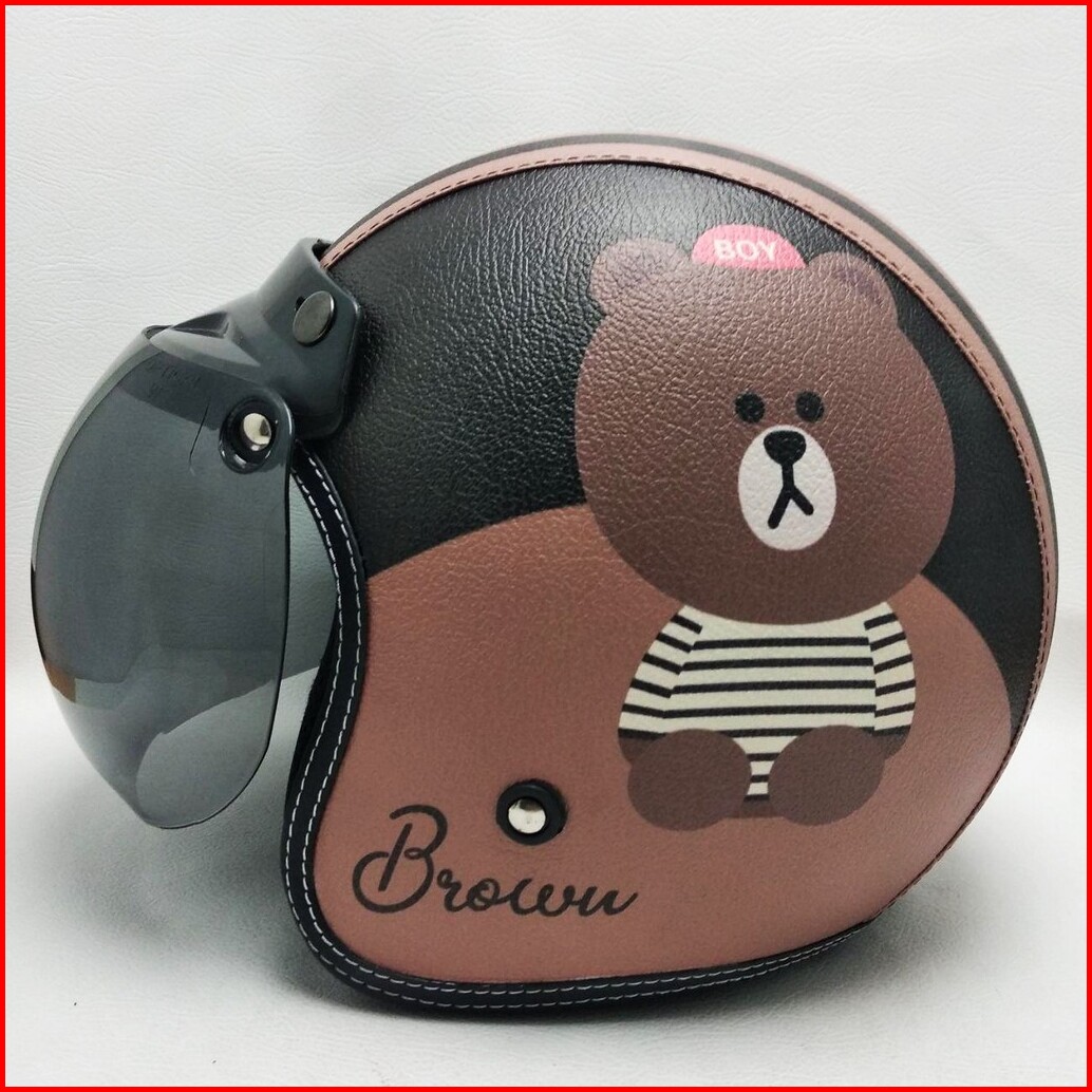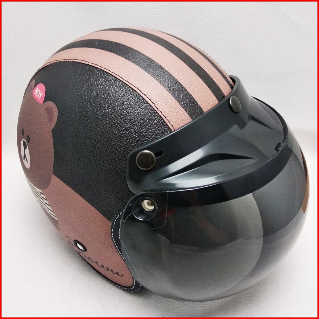 Helm Bogo Retro Kulit Motif Brown Kaca Bubble Halfface Helmet