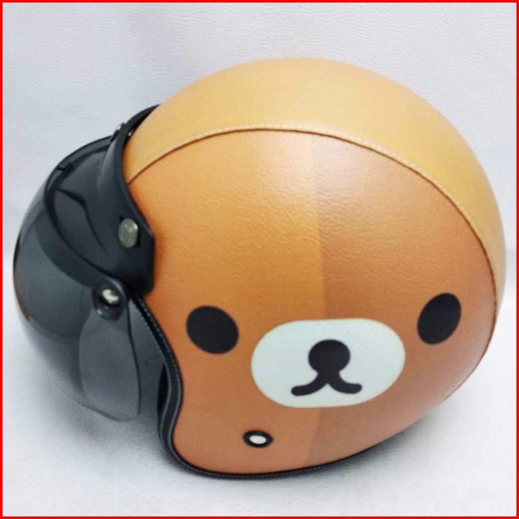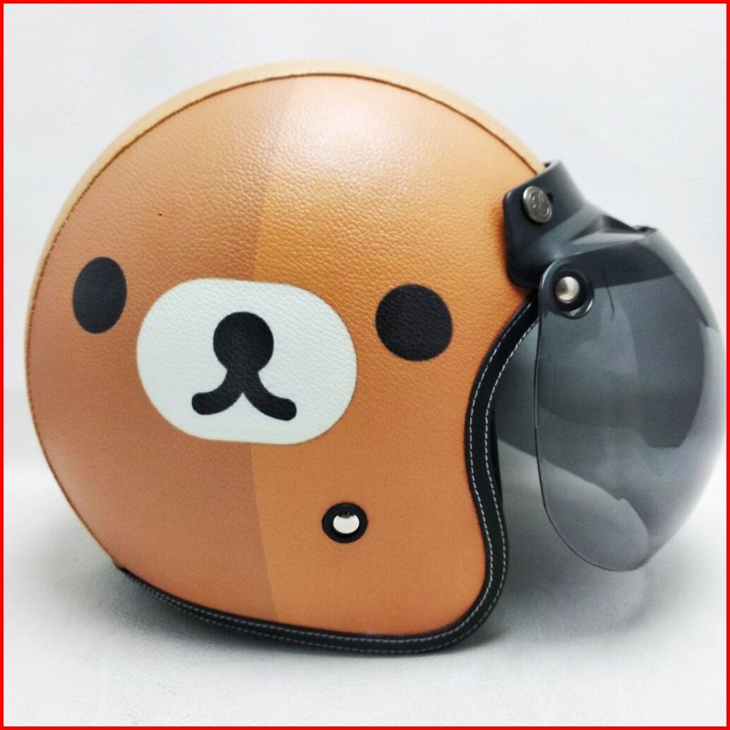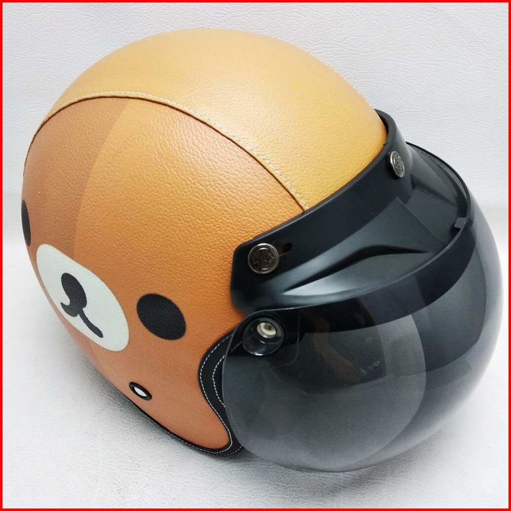 Helm Retro Bogo Kulit Motif Rilakkuma Coklat Kaca Bubble Halfface