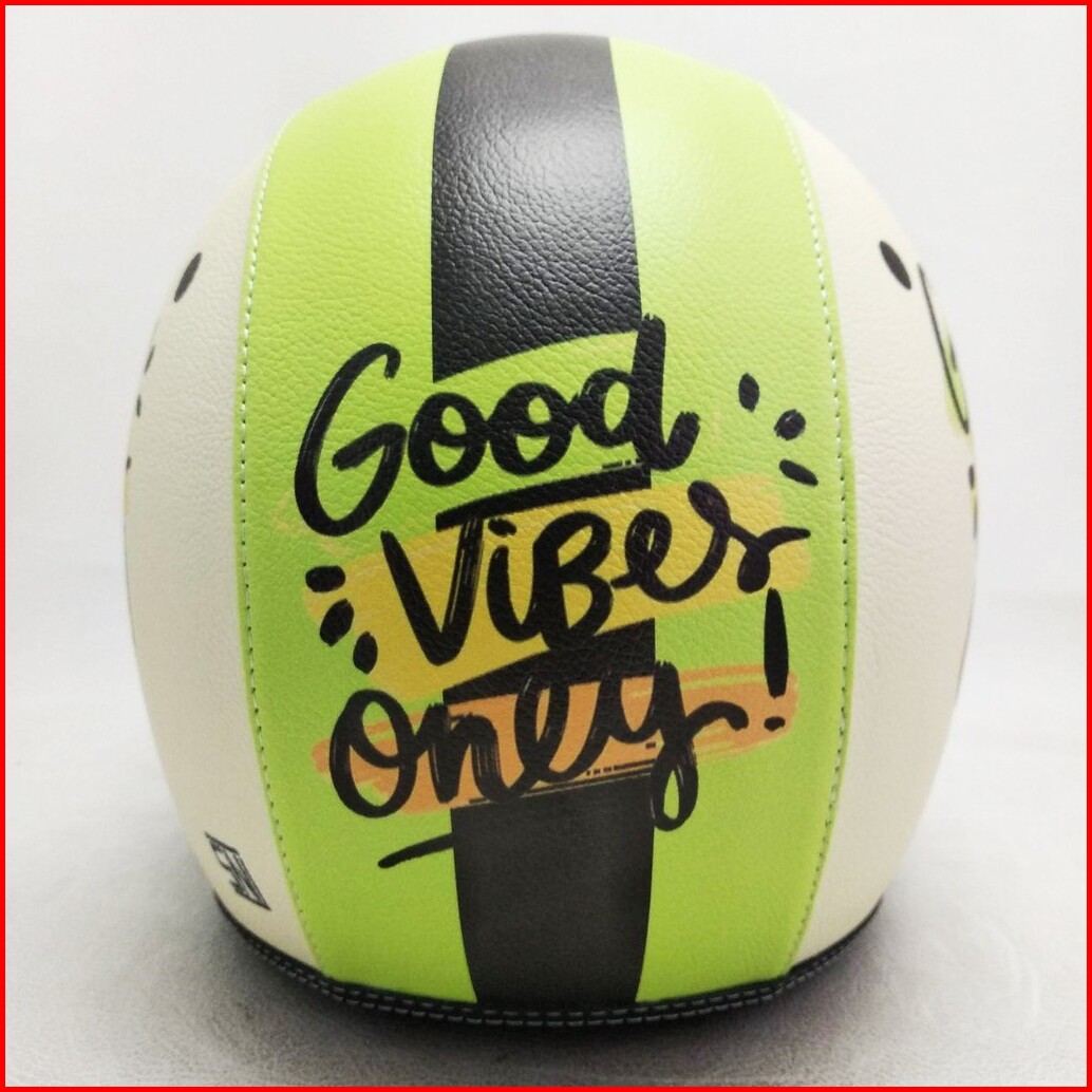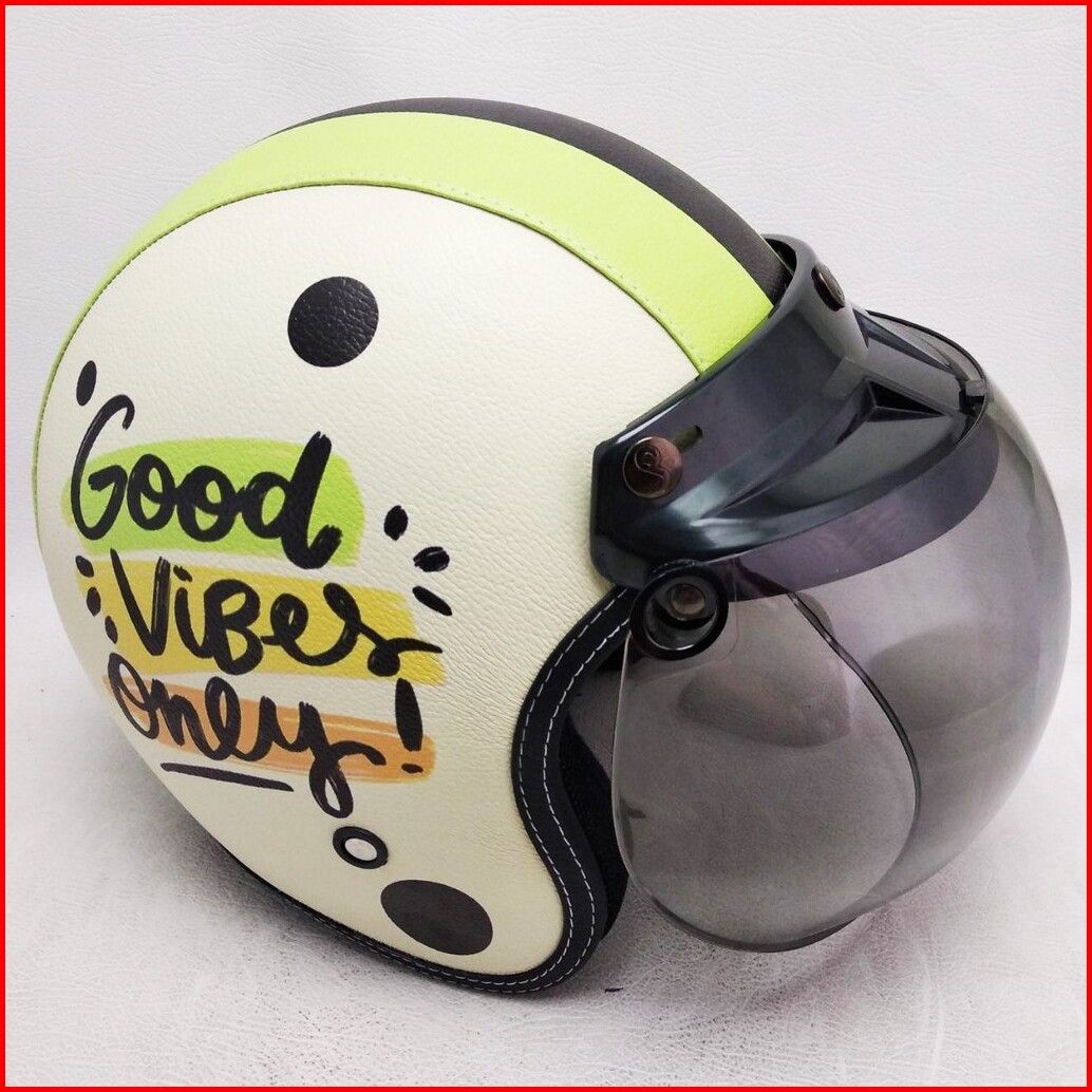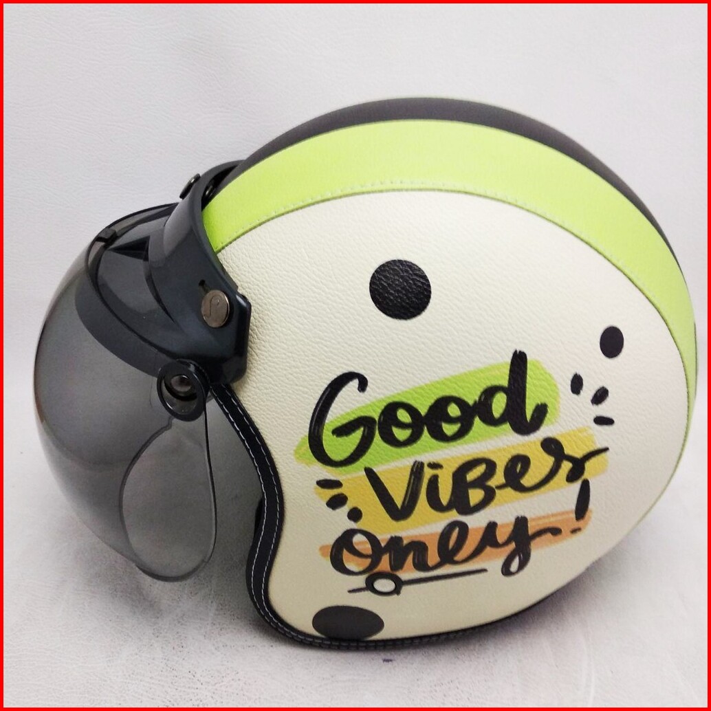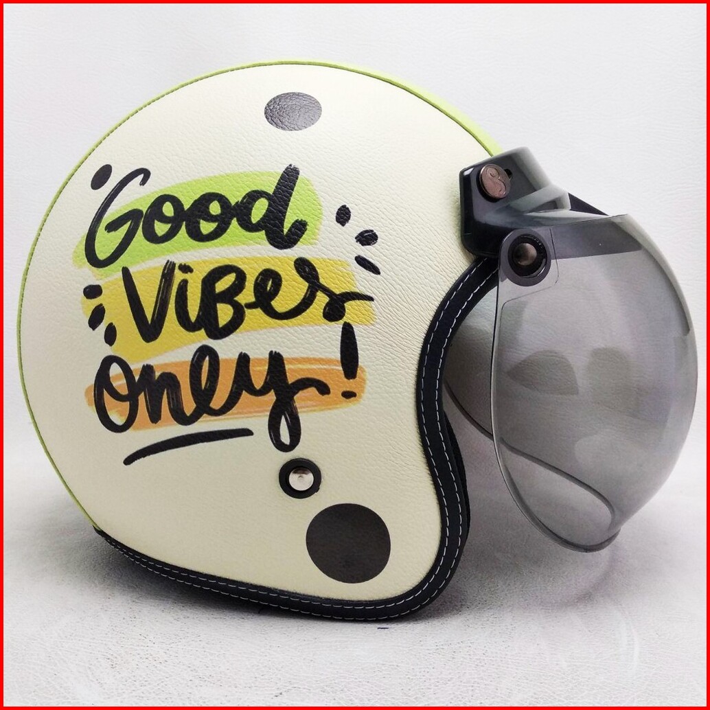 Helm Bogo Retro Kulit Motif Good Vibes Only Kaca Bubble Halfface