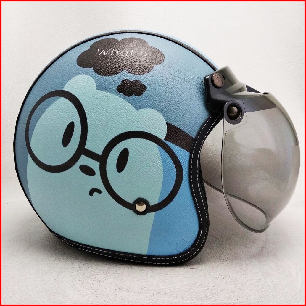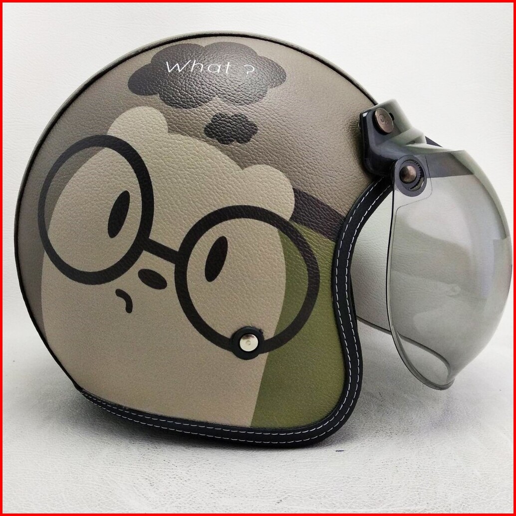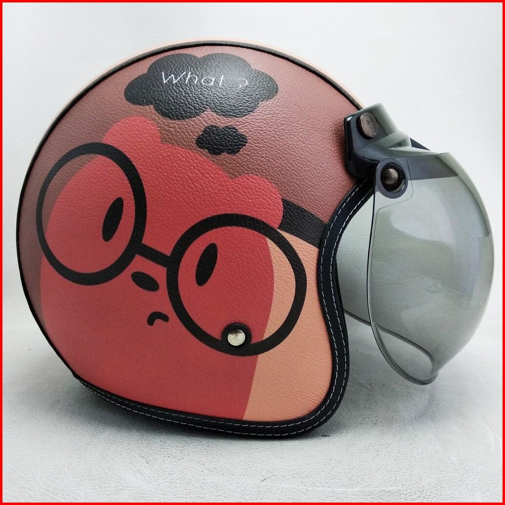 Helm Retro Bogo Kulit Motif Baby G Bear Panda Klasik Kaca Bubble Halfface