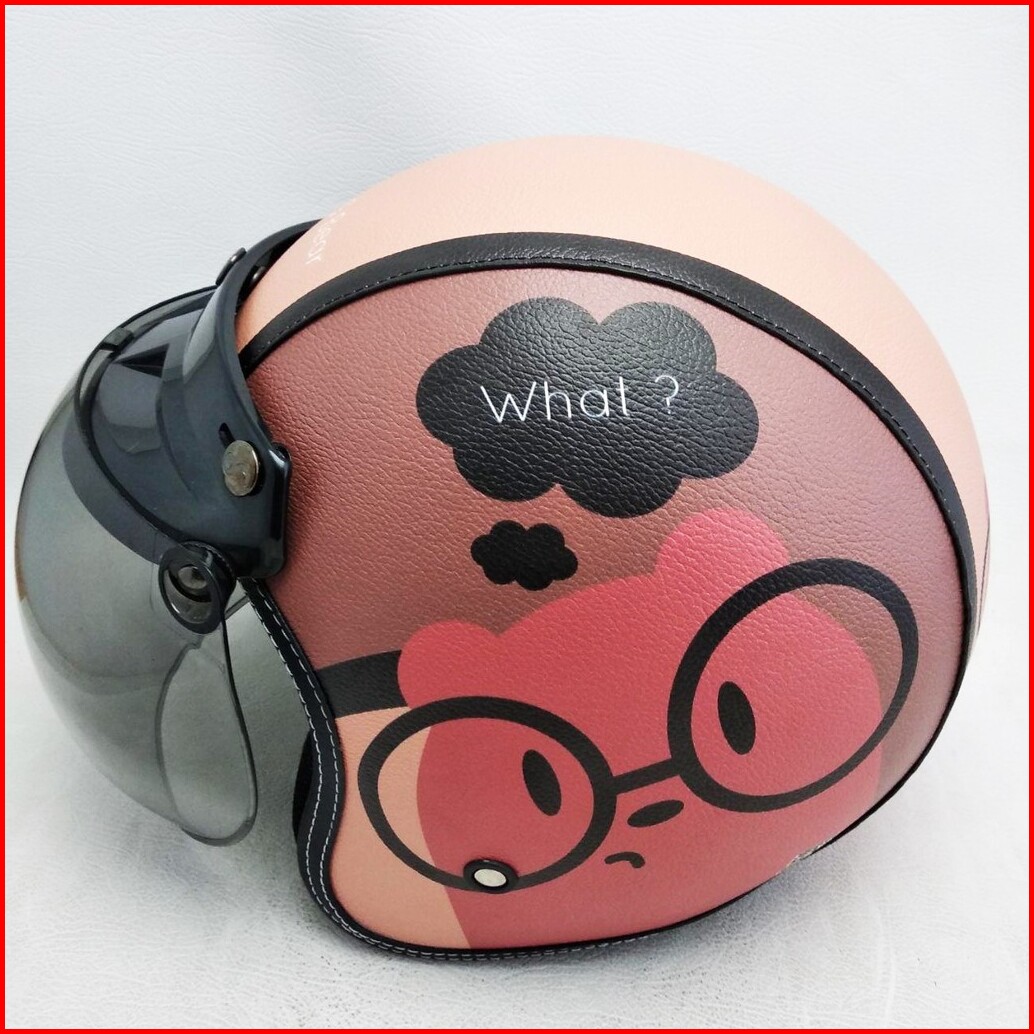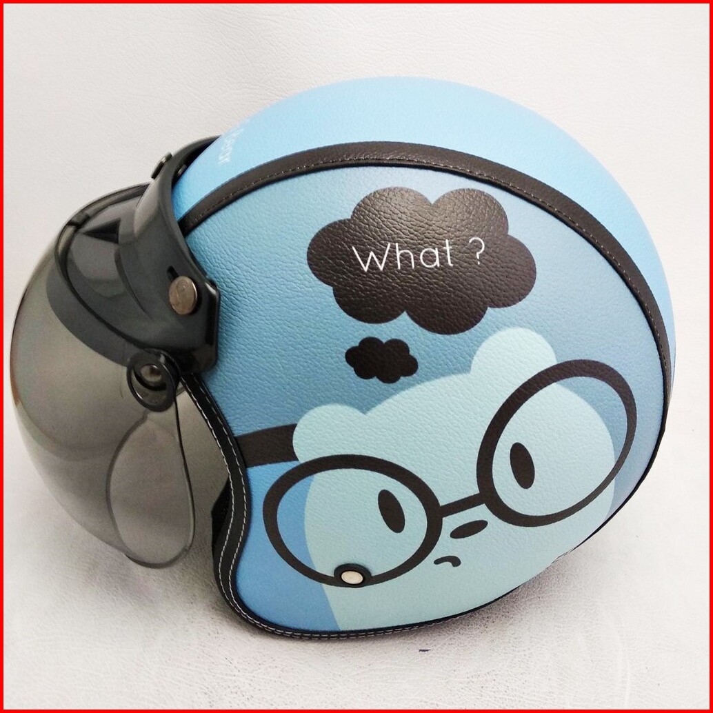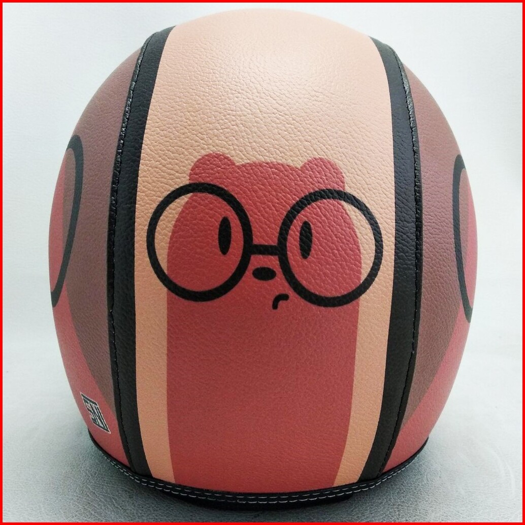 Helm Retro Bogo Kulit Motif Baby G Bear Panda Klasik Kaca Bubble Halfface