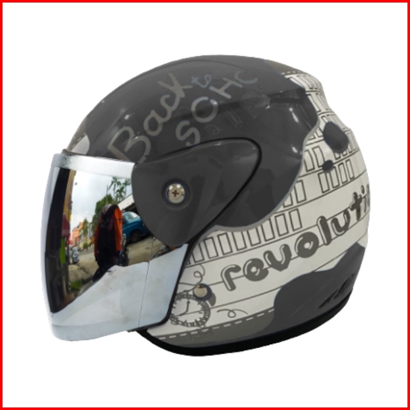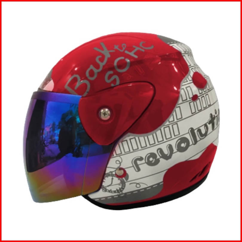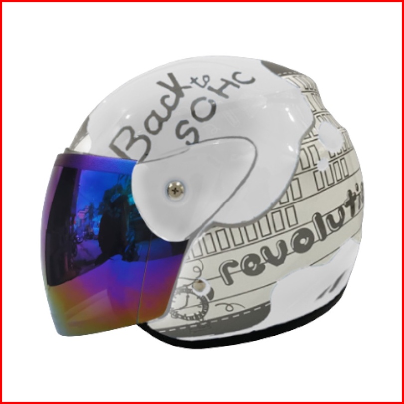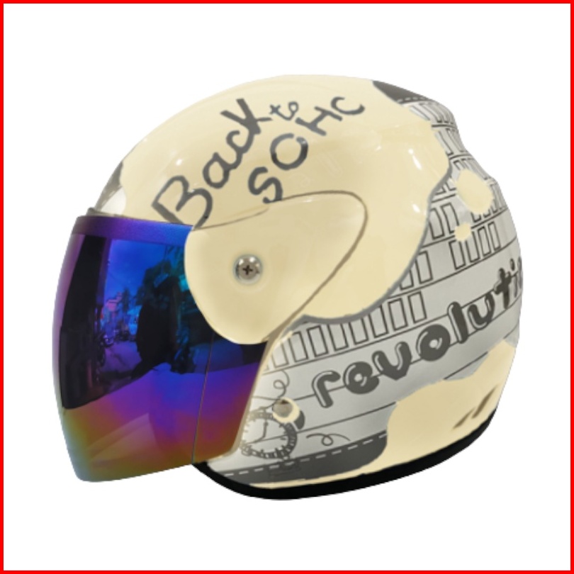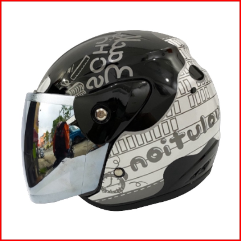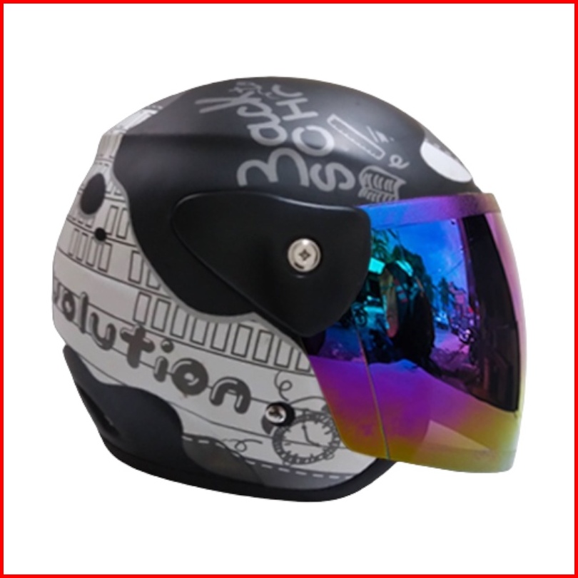 Helm Dewasa Half Face Evolution Motif Note Kaca Hitam Kaca Silver Kaca Pelangi Murah Premium Untuk Pria Dan Wanita